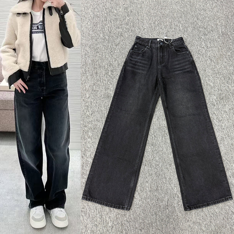 D家黑色牛仔裤女高腰直筒休闲百搭阔腿长裤女欧美风2025秋冬新款