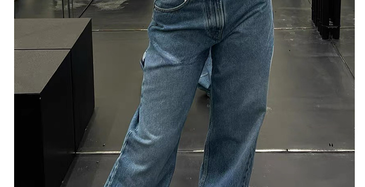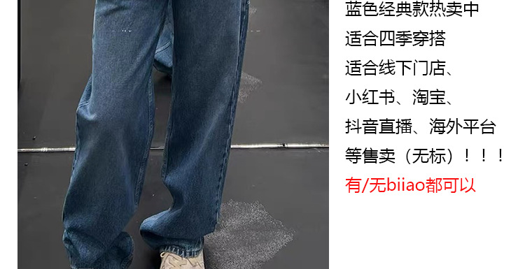 A.W蓝色牛仔裤女高腰直筒宽松休闲阔腿长裤女欧美风2025秋冬新款