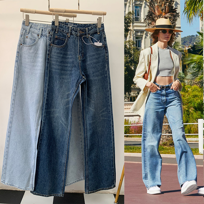 マックイーン ストレート ジーンズ レディース ブルー ハイウエスト スリム ルーズ ワイドレッグ パンツ レディース 2025 秋冬 工場直販