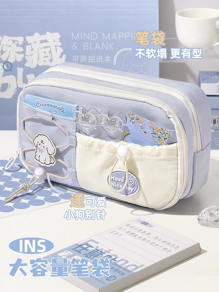 海盐奶蓝!笔袋大容量女孩款女童文具高颜值ins风小学生儿童铅笔