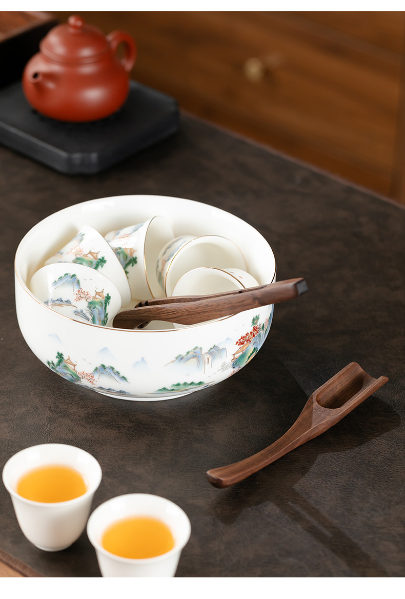 茶道六君子五点セット花梨木黒檀木銅木養壺筆茶刀茶さじ茶茶杯