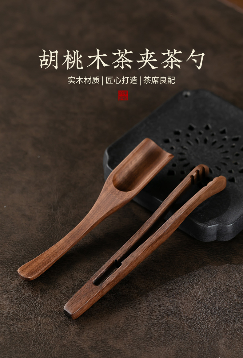 胡桃木茶匙实木茶夹茶勺茶铲分茶叶勺子挖茶叶舀茶勺取茶茶器配件