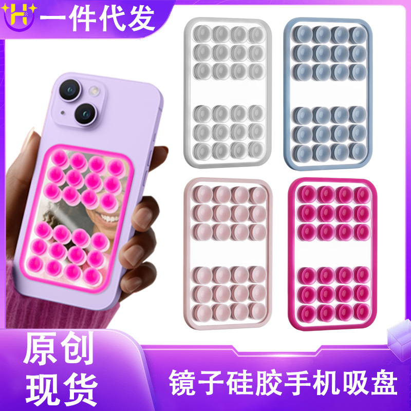 跨境新款手机吸盘支架磁吸镜子手机吸盘方形粘贴式镜子手机吸盘