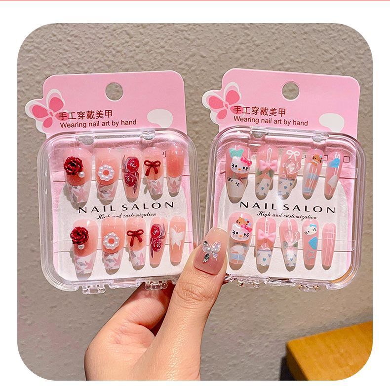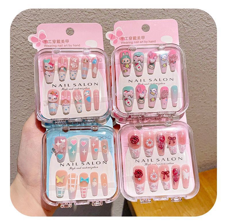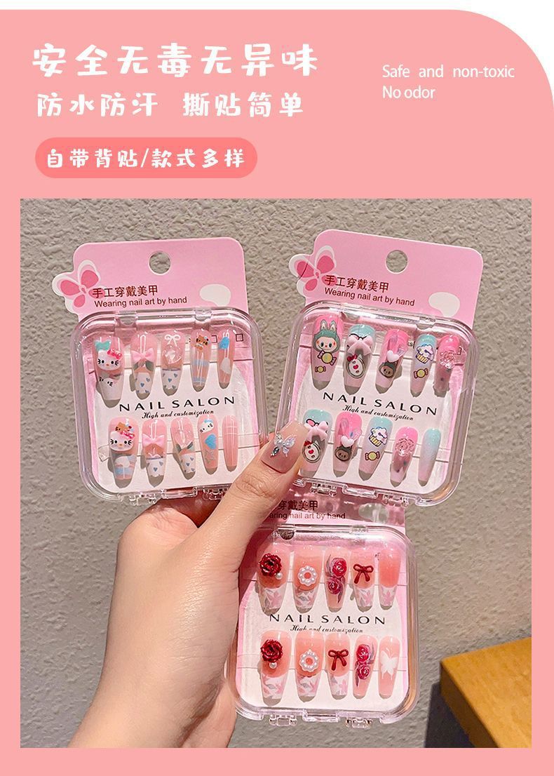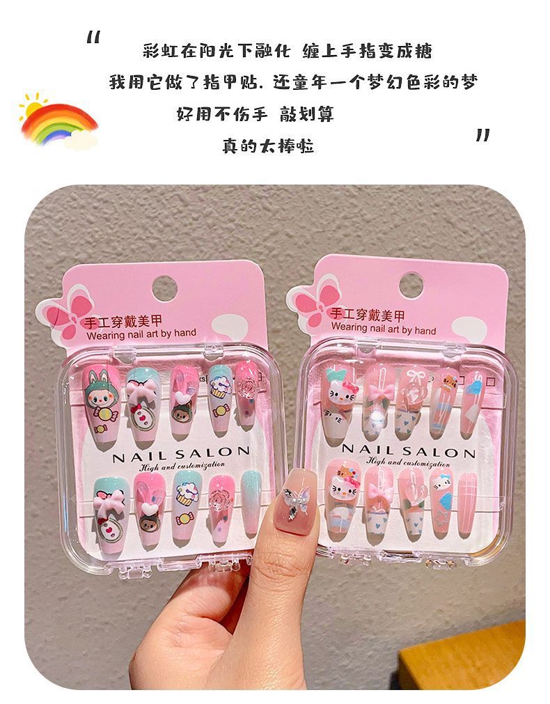 新款网红穿戴甲 精美盒装儿童指甲贴 可爱卡通美甲贴 成品假指甲
