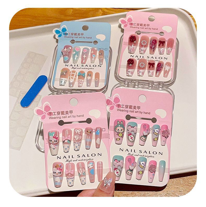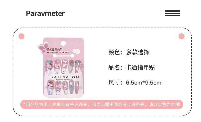 拉布布美甲贴卡通立体HelloKitty穿戴甲女孩甜美可爱长款指甲贴