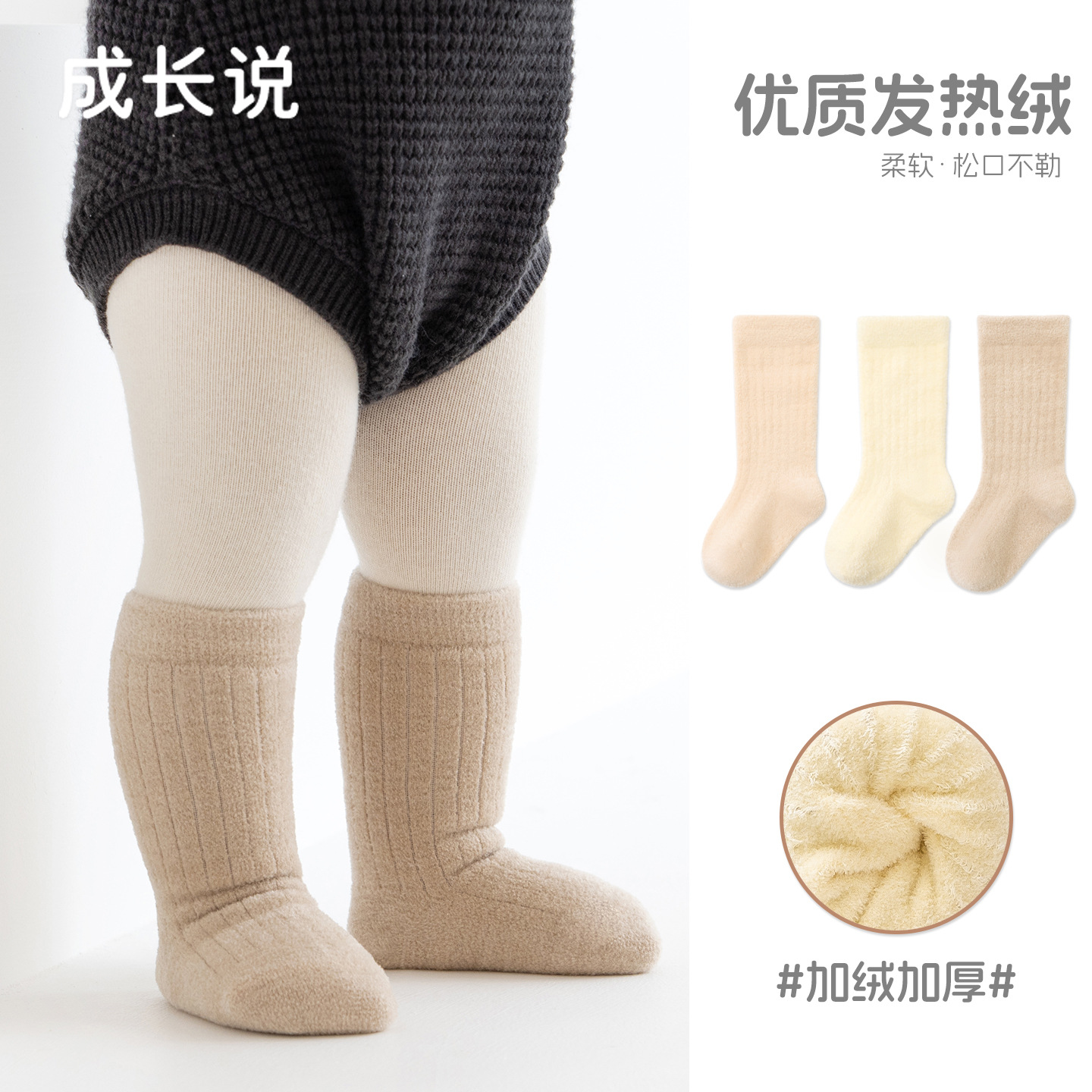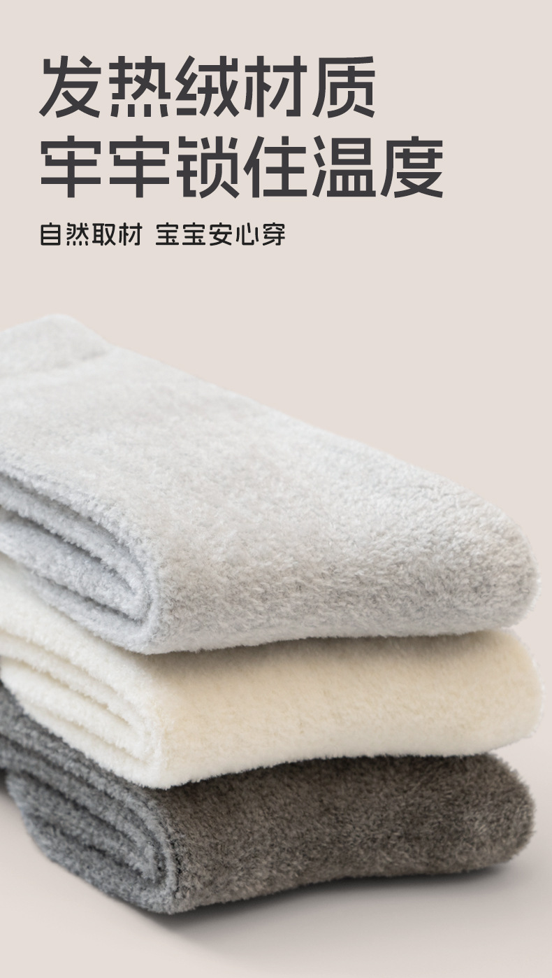 宝宝袜子冬季新款纯色加绒加厚保暖袜松口无骨女童男童婴儿中筒袜