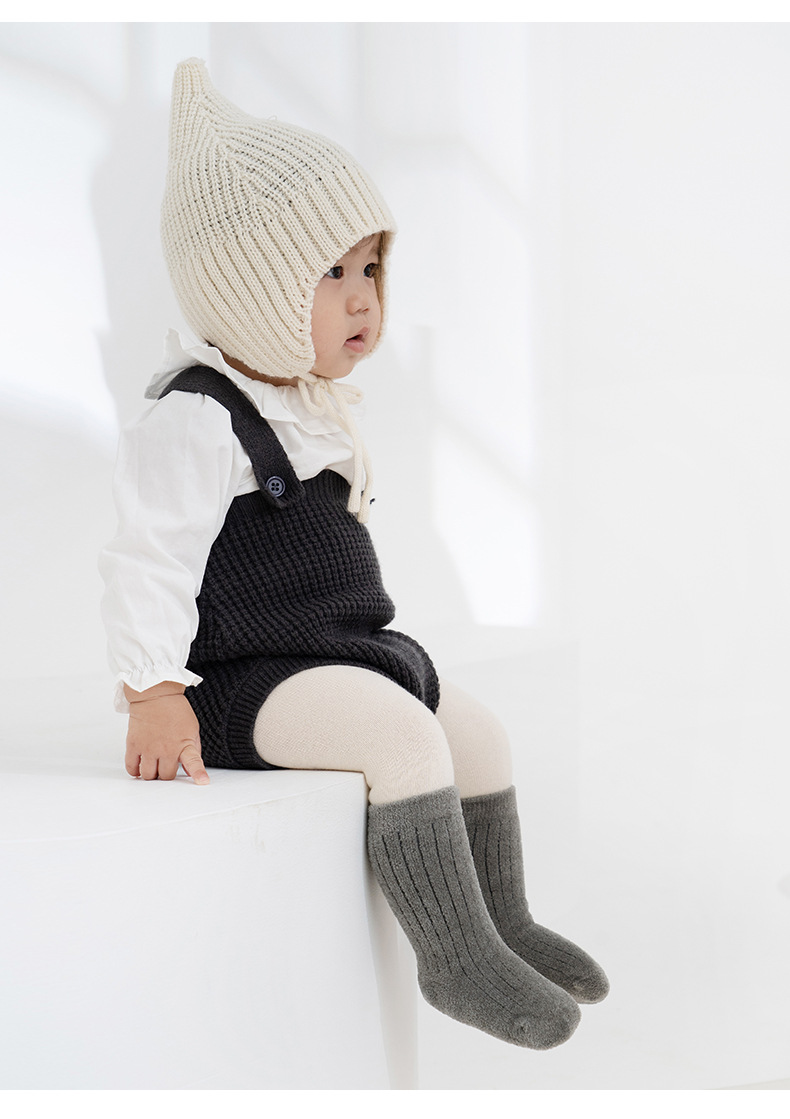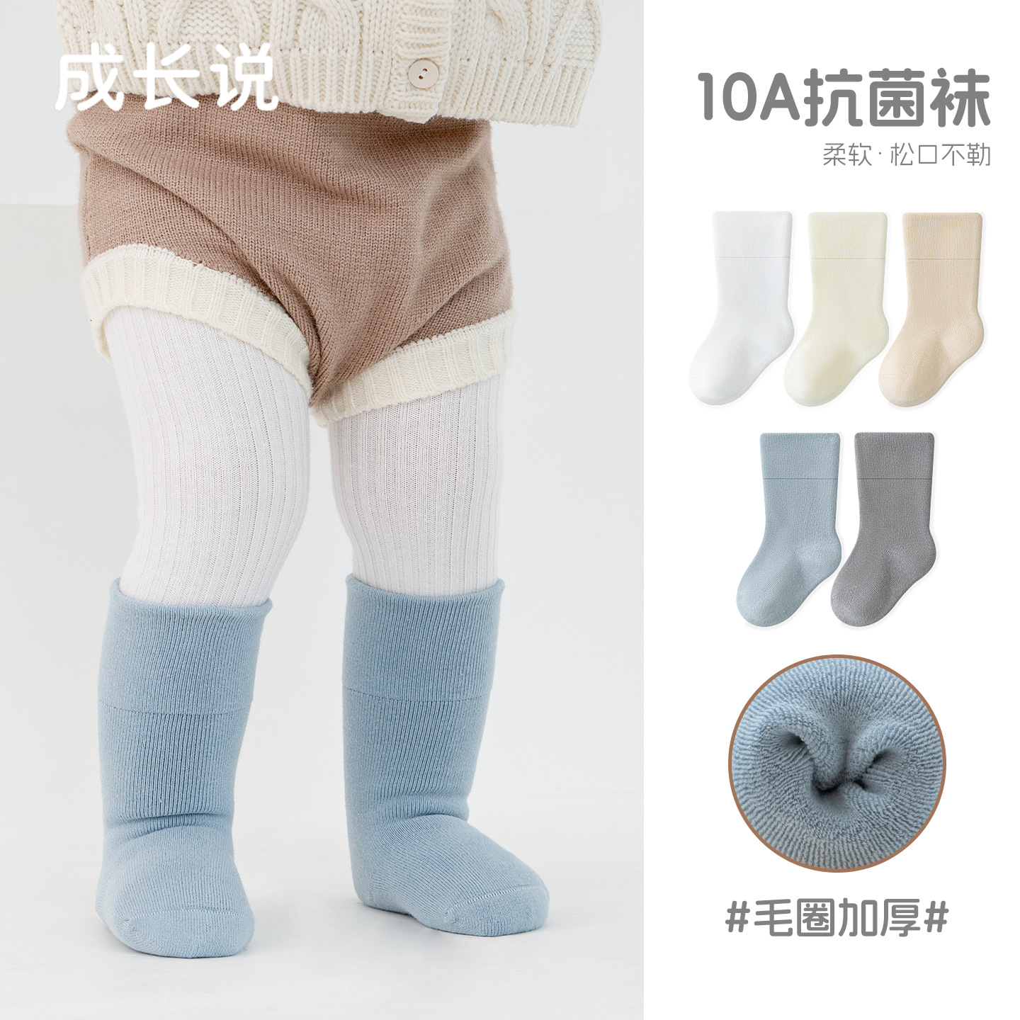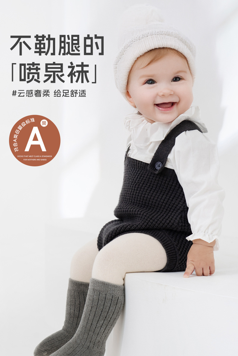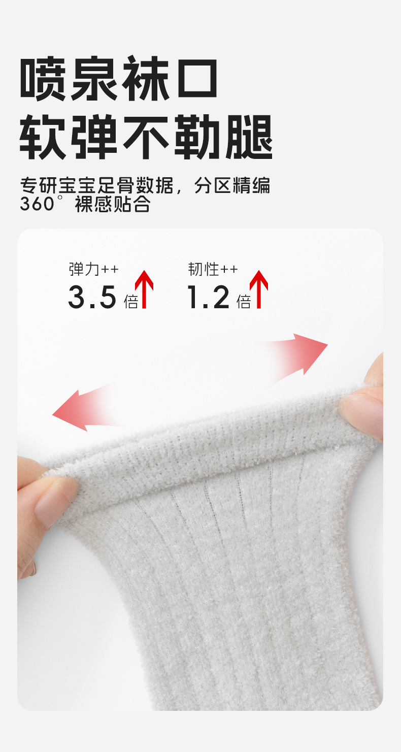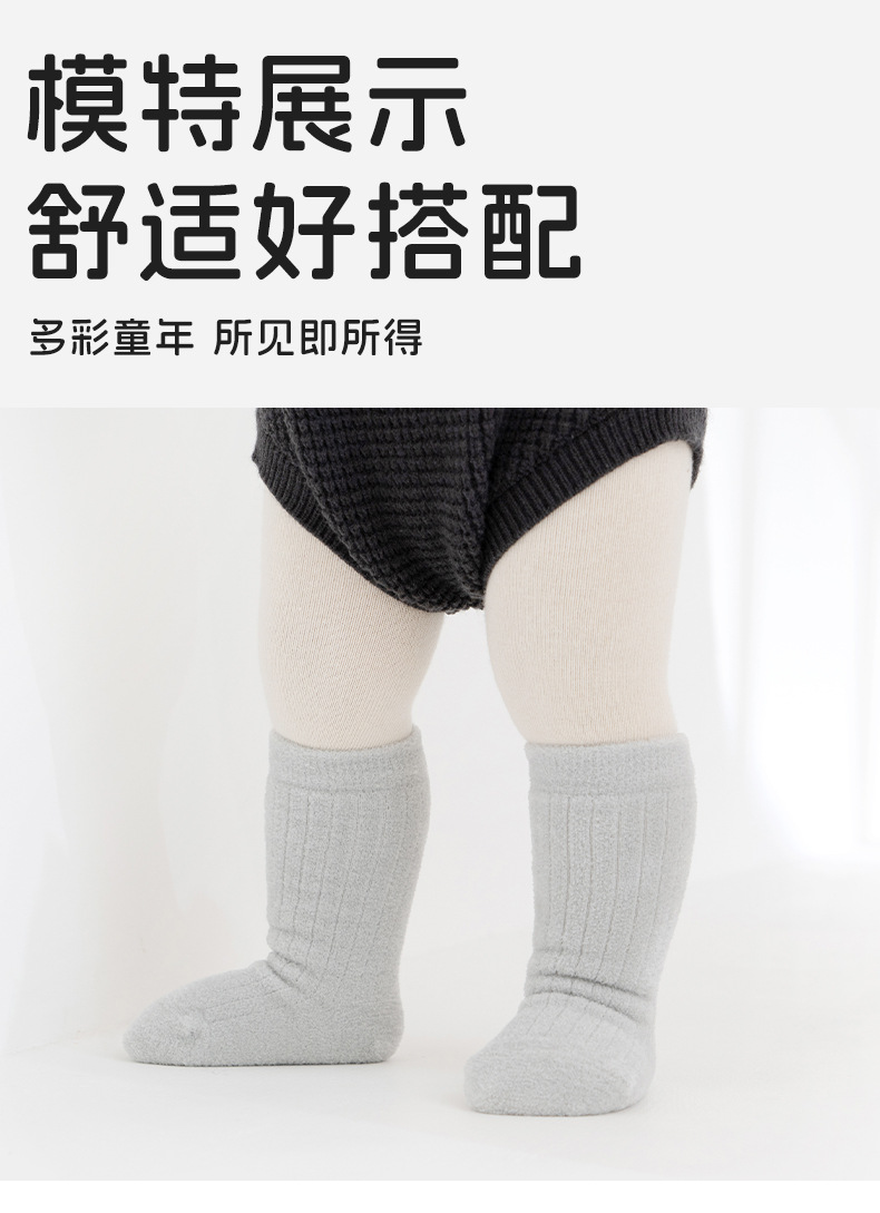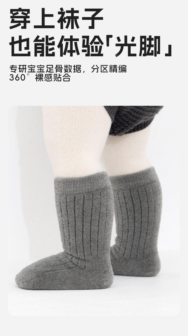 宝宝袜子冬季新品毛圈加厚袜男女宝纯色无骨不勒腿儿童婴儿小腿袜