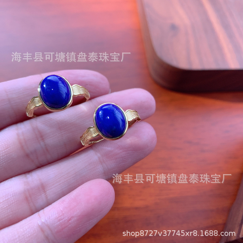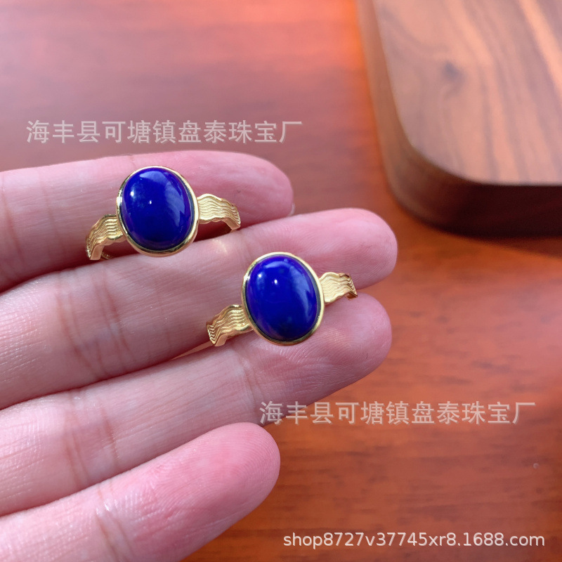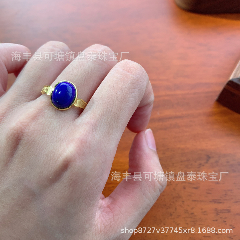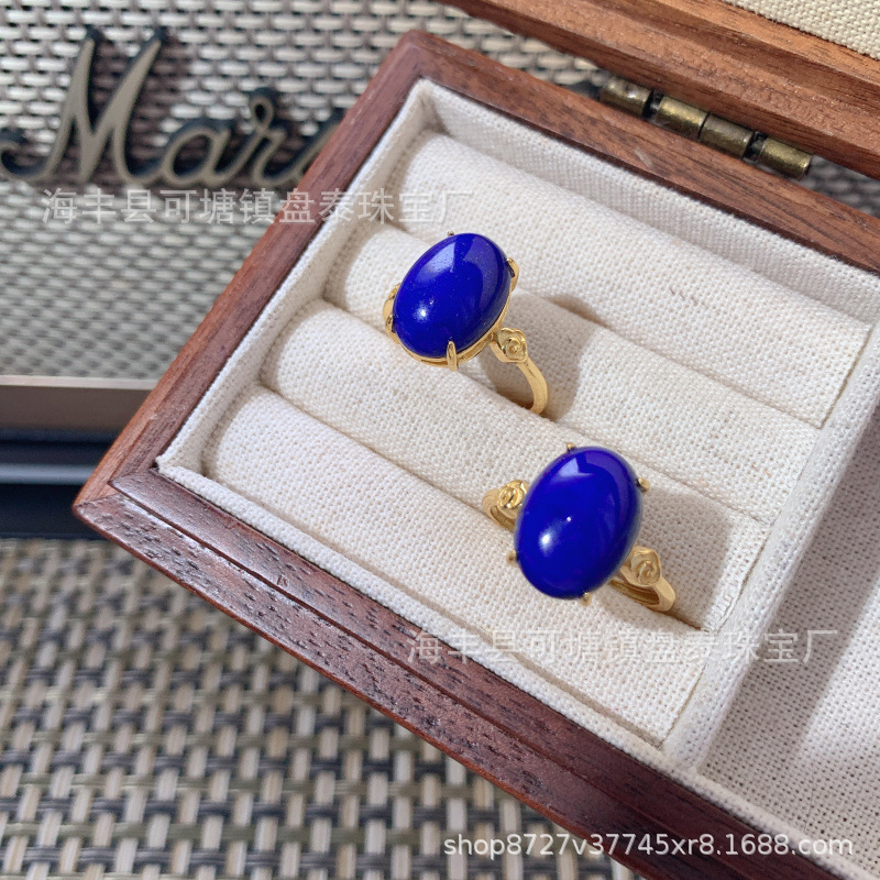 厂家批发 天然青金石鸽子蛋戒指 S925银镶嵌