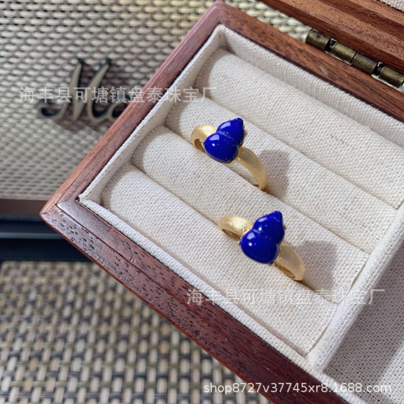 厂家批发 天然青金石葫芦戒指 S925银镶嵌