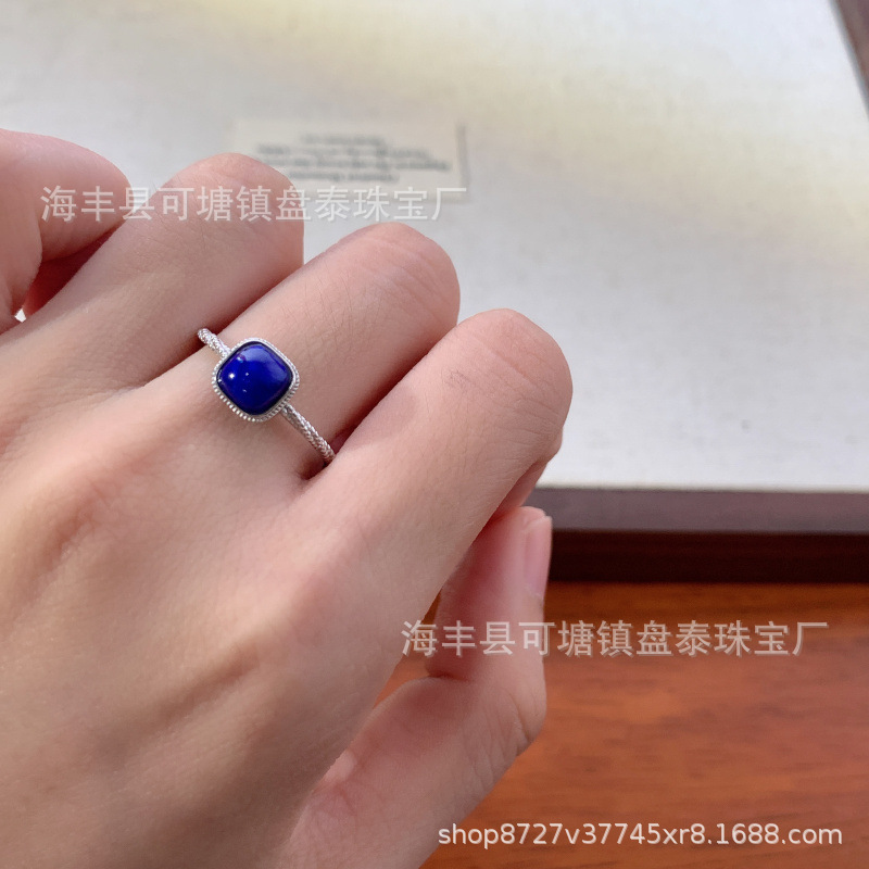 厂家批发 天然青金石小方糖戒指 S925银镶嵌