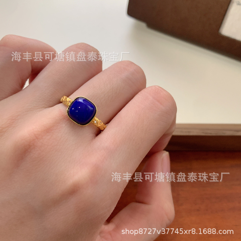 Huibaoli S925 シルバーゴールドメッキ象嵌ラピスラズリカボションファッショナブルでシックな女性の開口部調節可能なリングリング