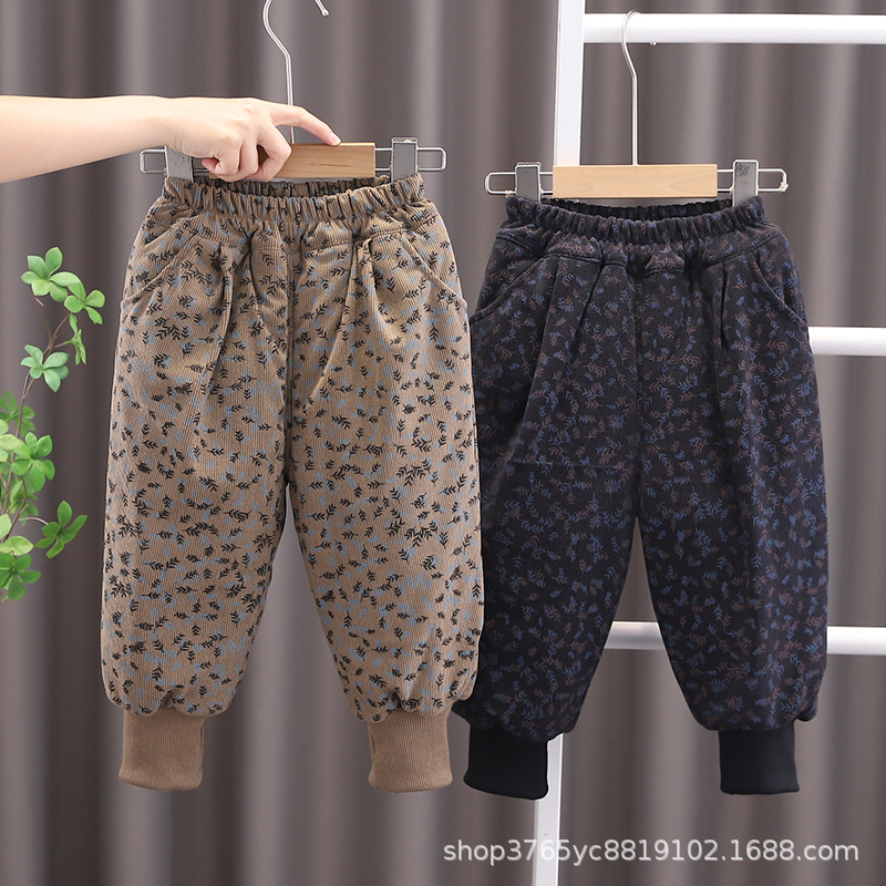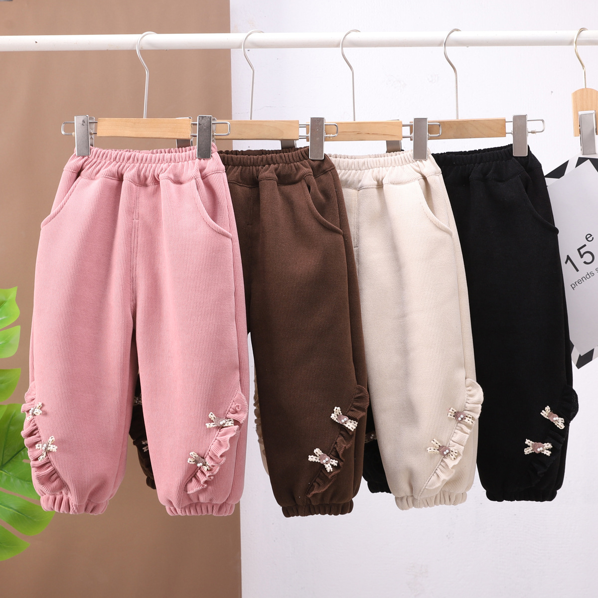 新商品の洋風カジュアルパンツ子供は一体の毛を厚くしてズボンの衛ズボンを着て保温綿のズボンの女の子のズボンの冬服を着ます。