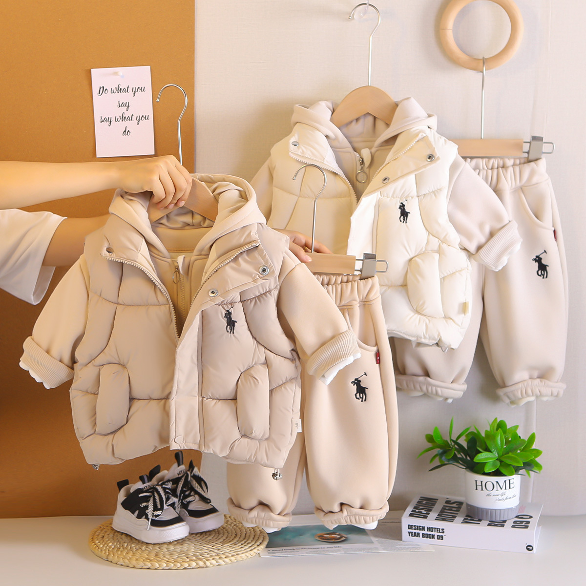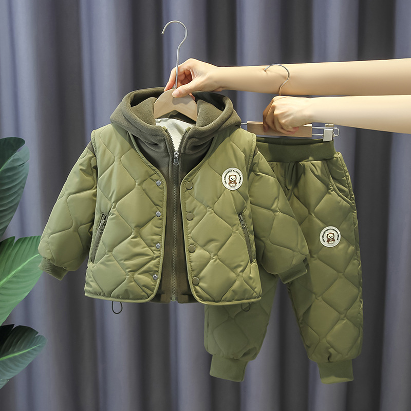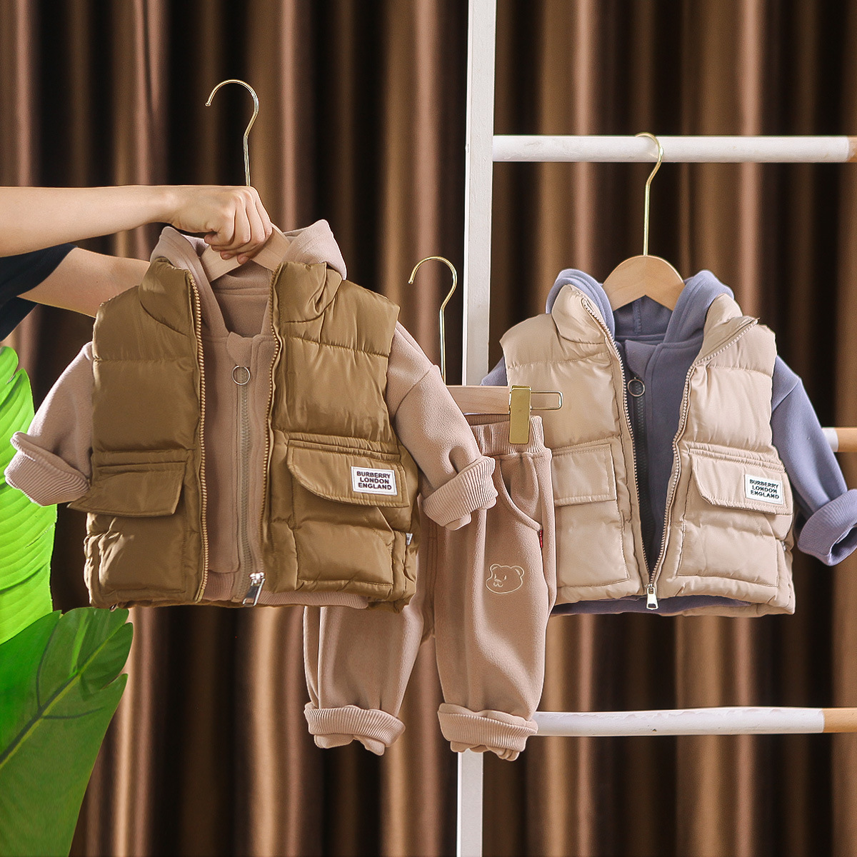 男童冬季加绒套装2025新款儿童冬装1-5岁宝宝秋冬男孩马甲三件套