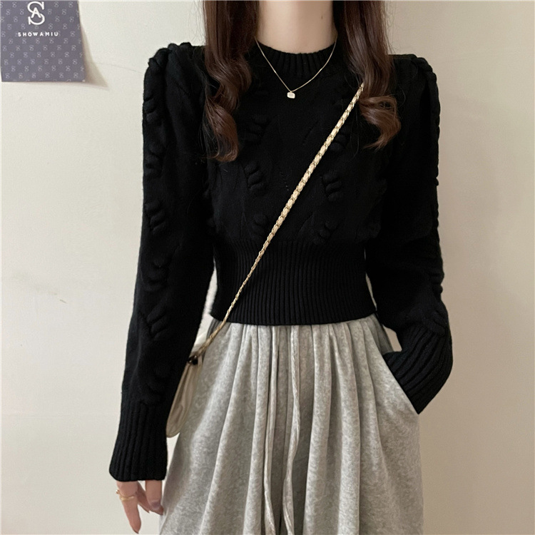 正肩毛衣女秋冬款洋气内搭打底衫小个子独特别致收腰短款上衣加厚