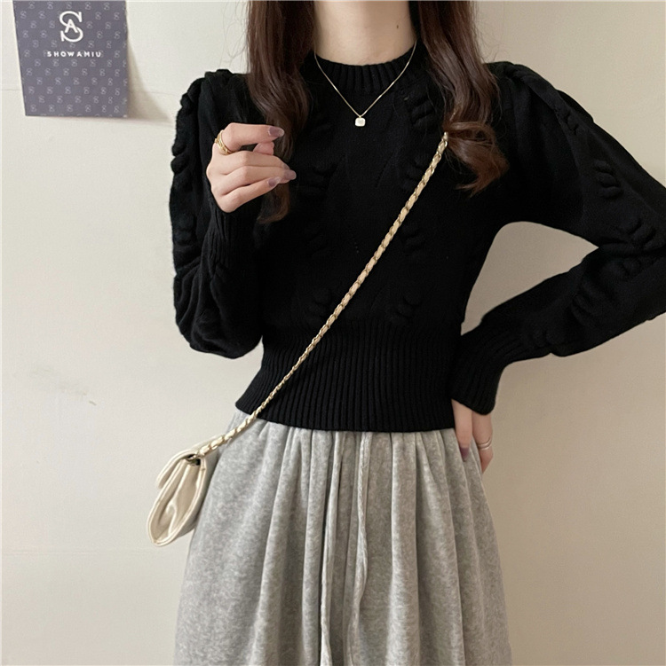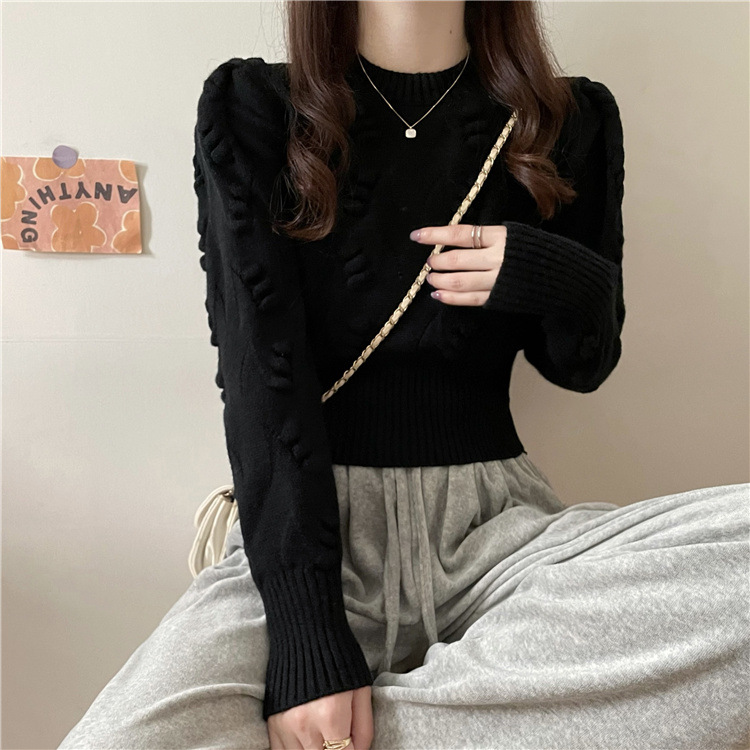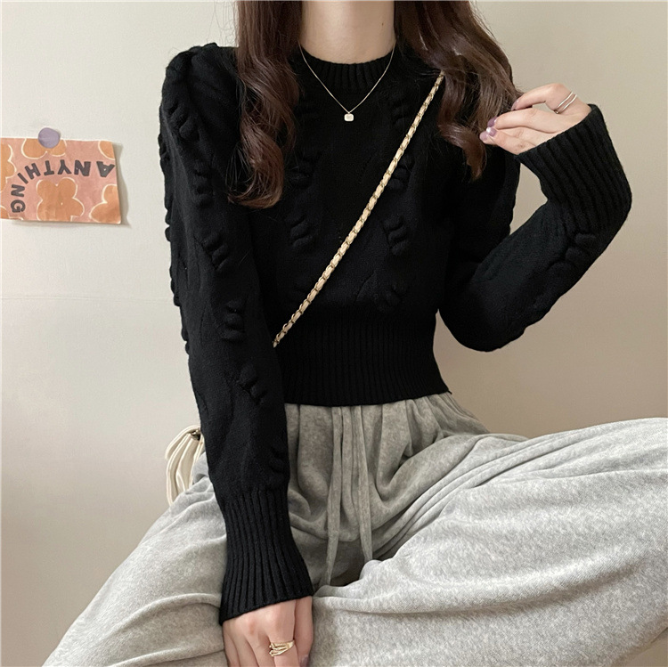 長袖ニット黒ショート丈新作レディース2025年インナーセーター秋冬セーター冬万能