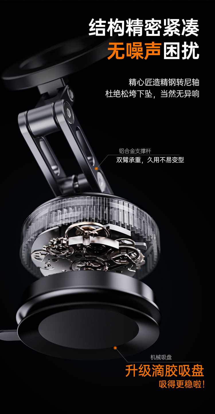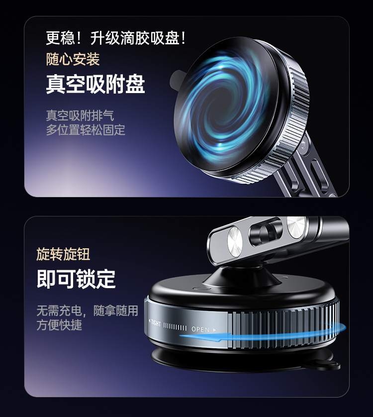 x53电动吸盘手机车载真空电动磁吸支架 中控抖音电动真空磁吸支架