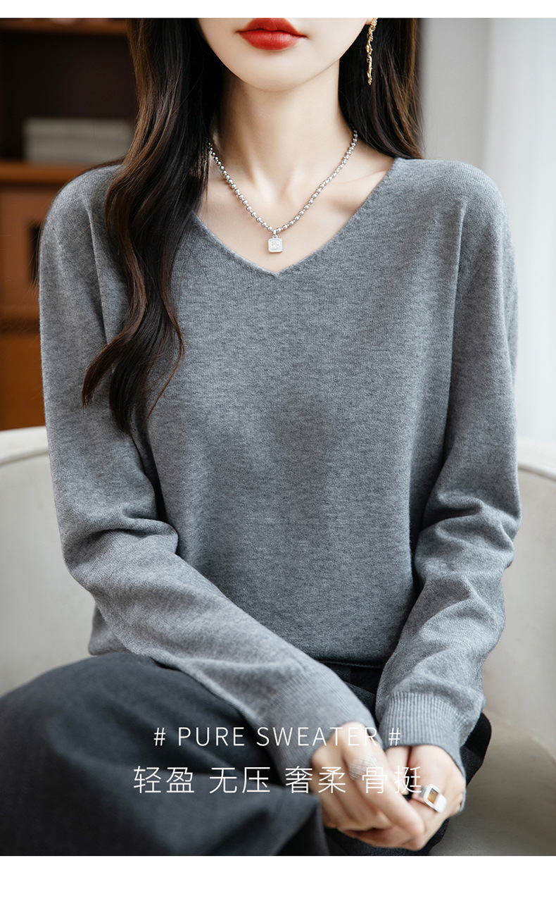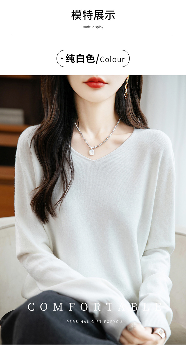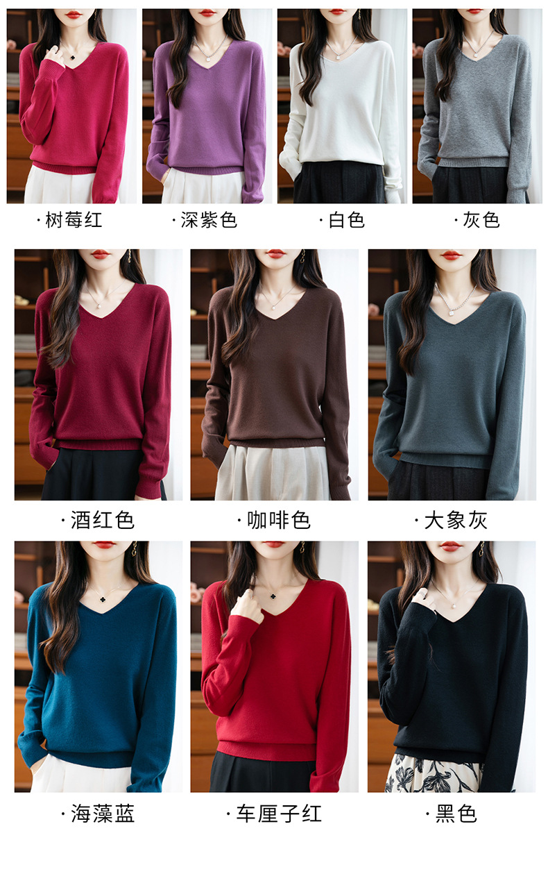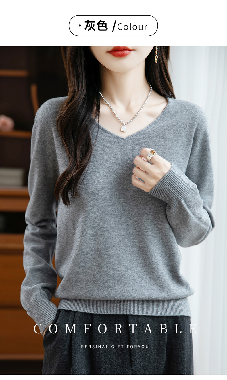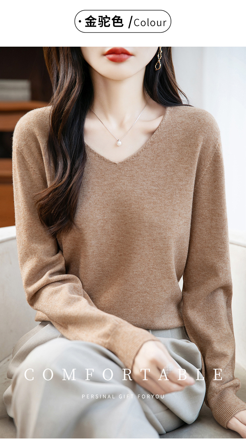 一线成衣V领针织打底衫女宽松气质长袖秋冬新款毛衣内搭女装上衣