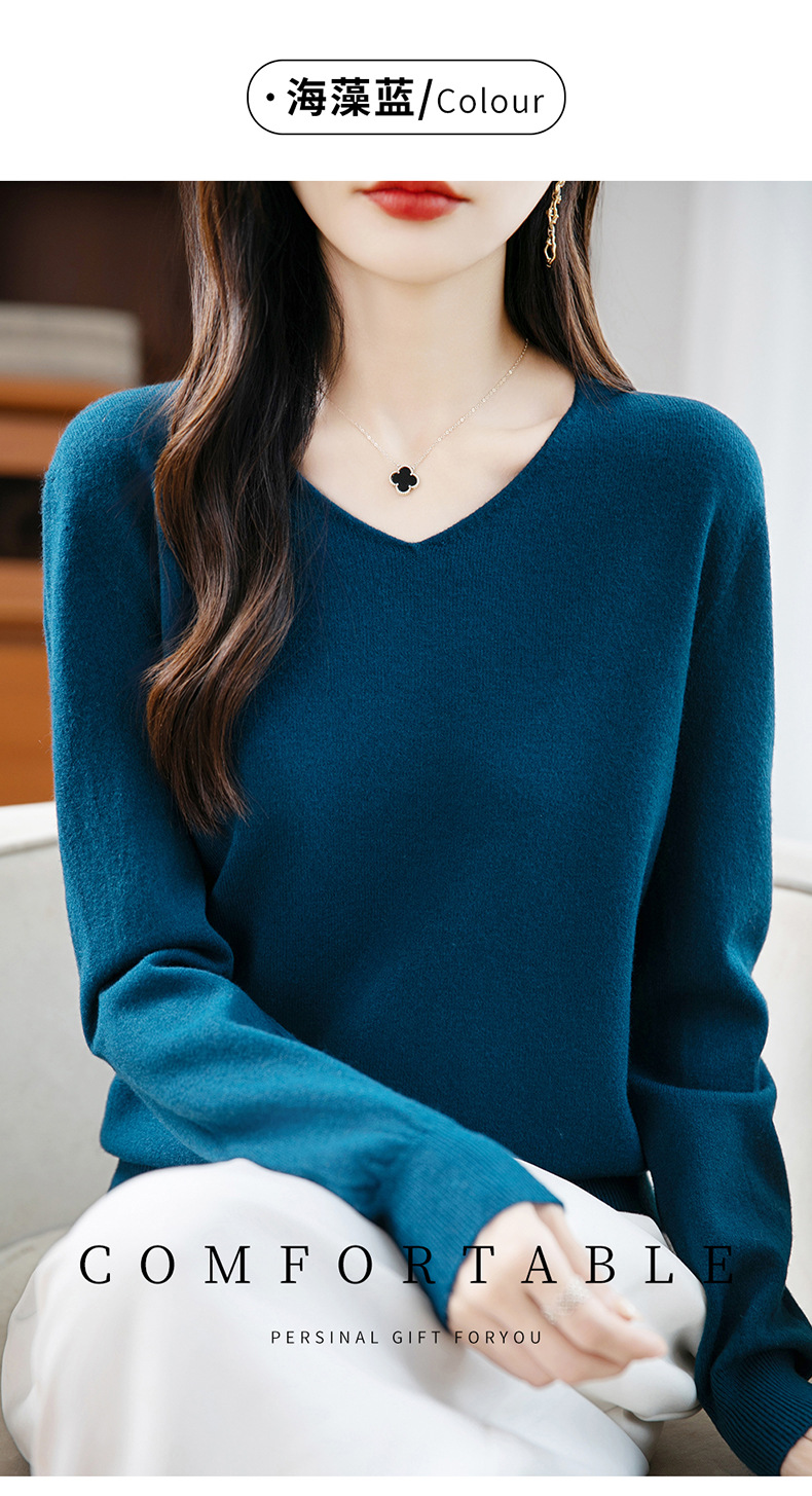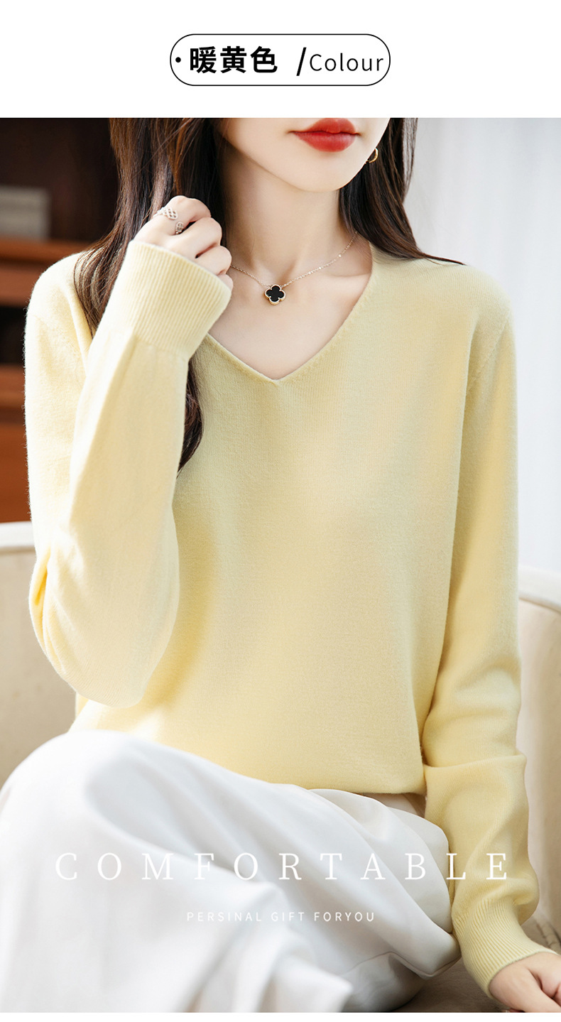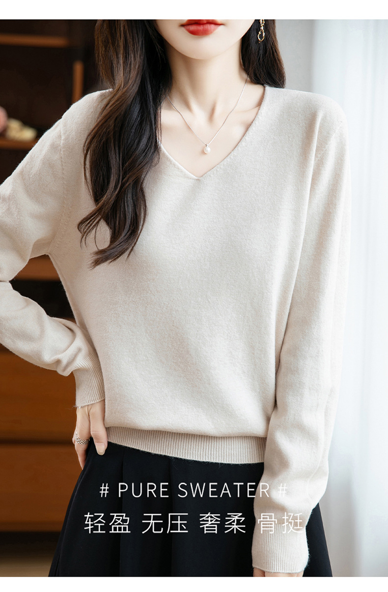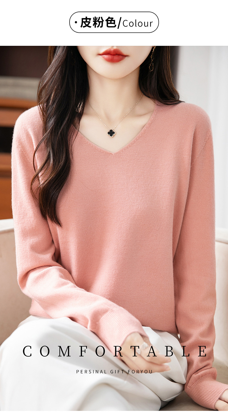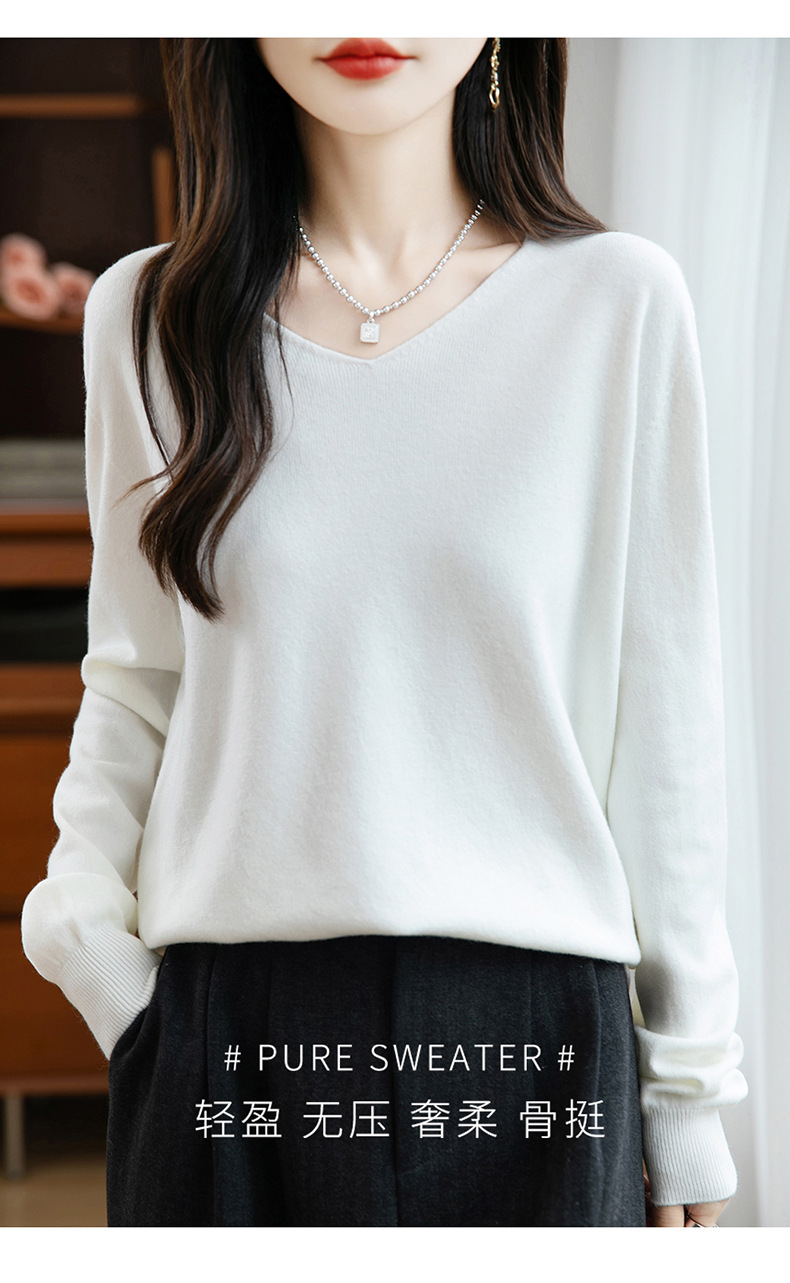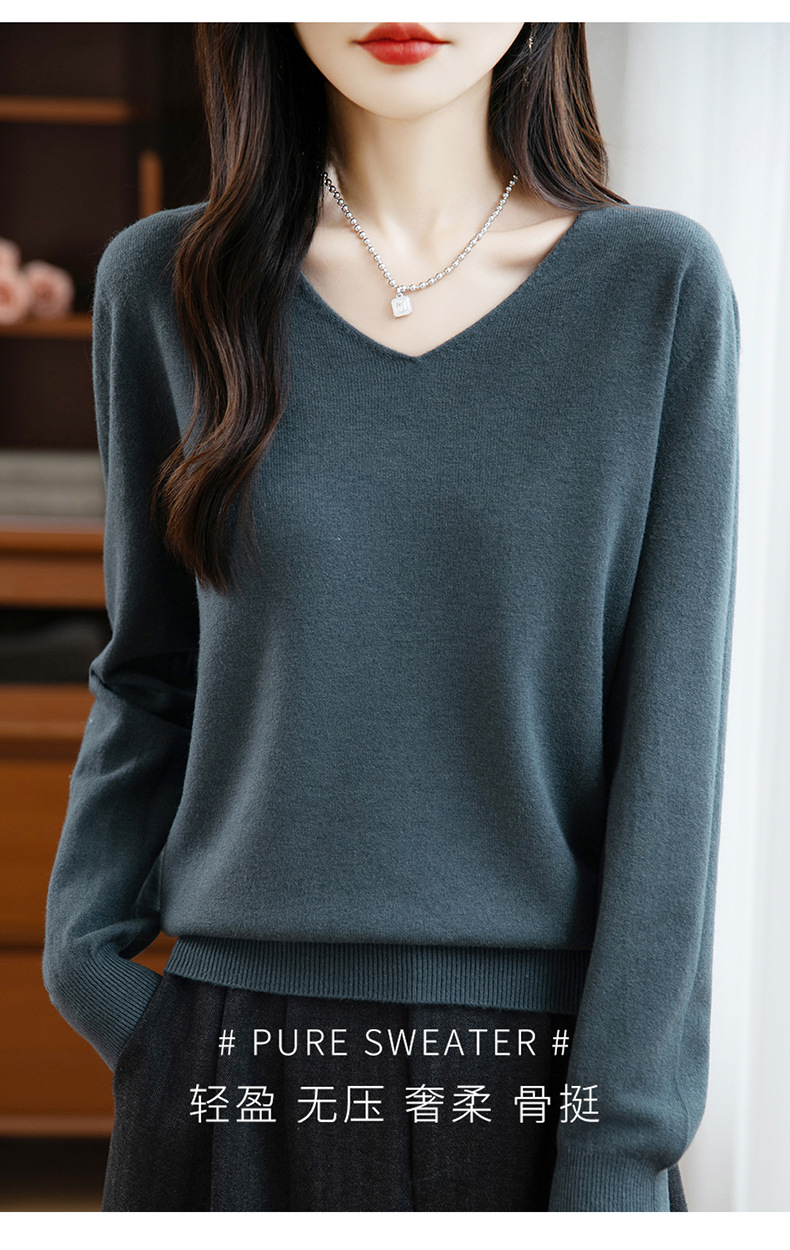 一线成衣V领针织打底衫女宽松气质长袖秋冬新款毛衣内搭女装上衣