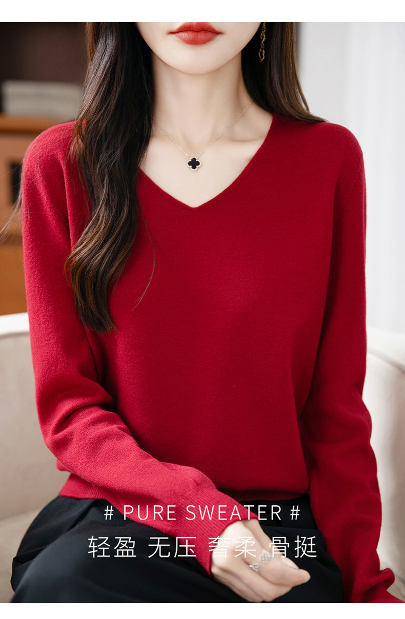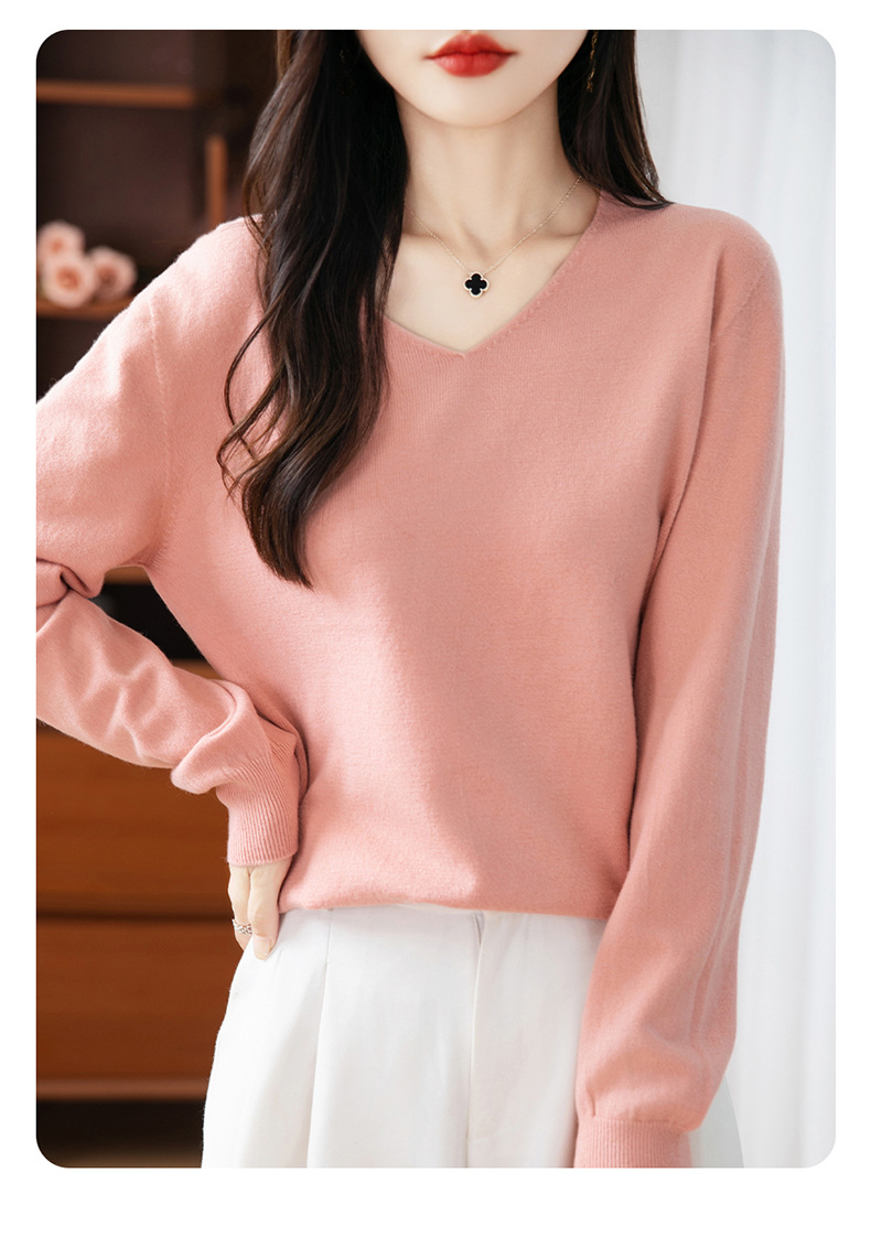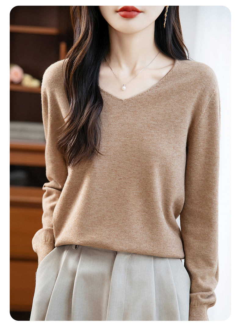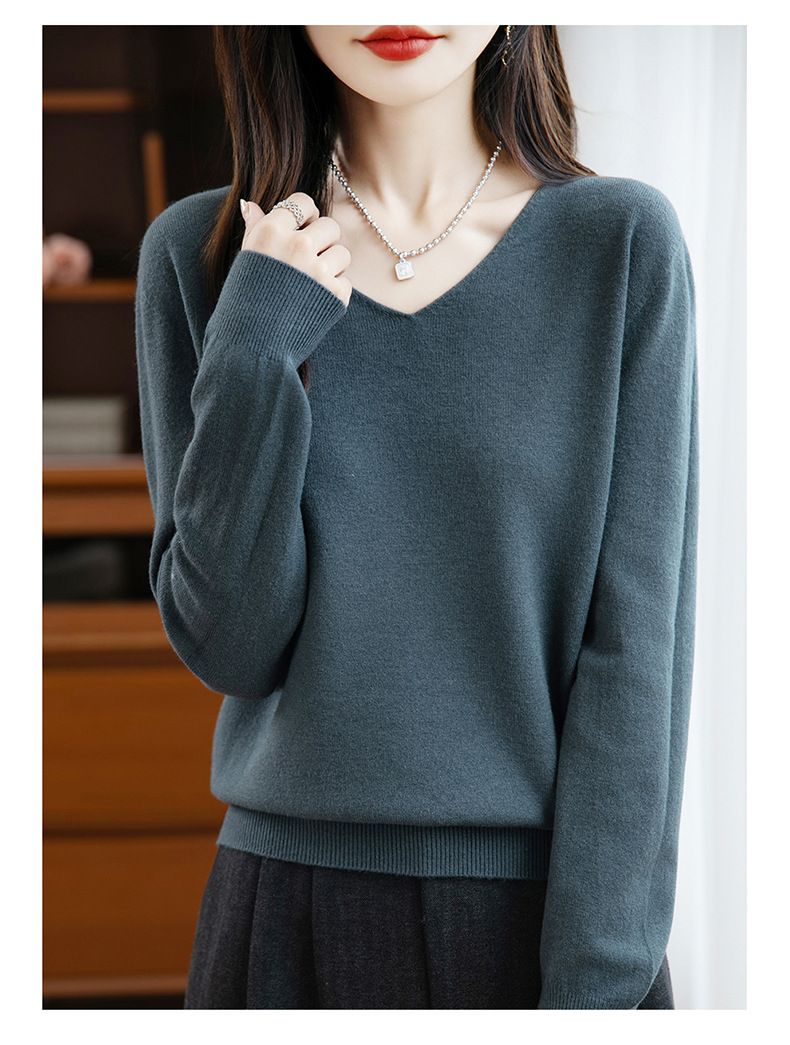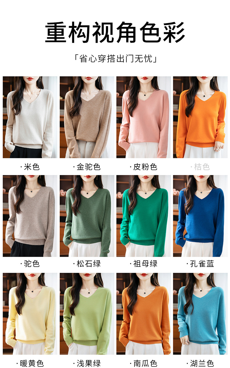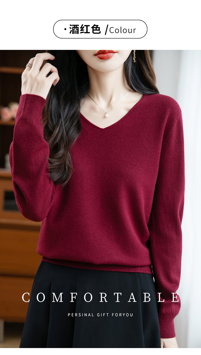 一线成衣V领针织打底衫女宽松气质长袖秋冬新款毛衣内搭女装上衣