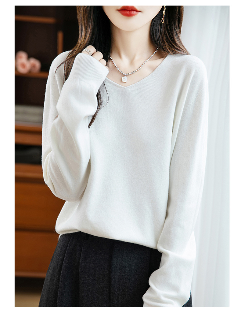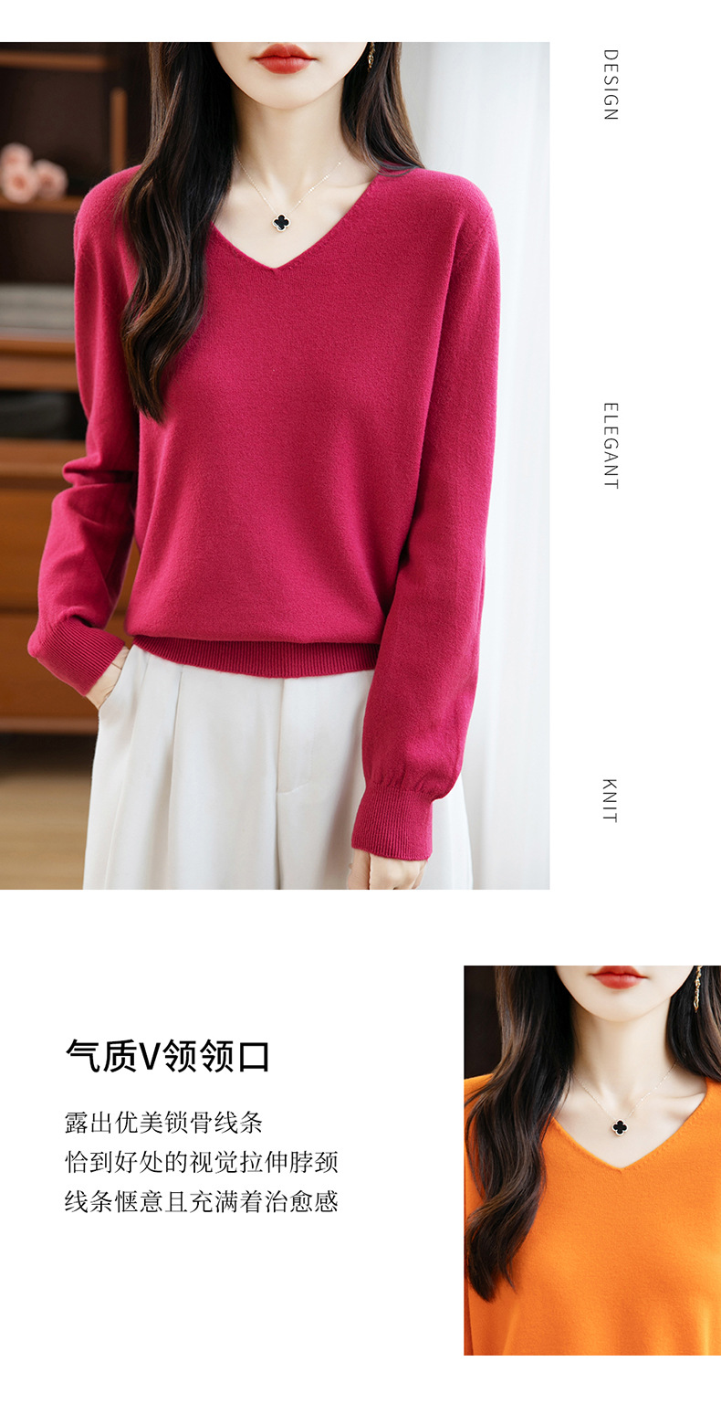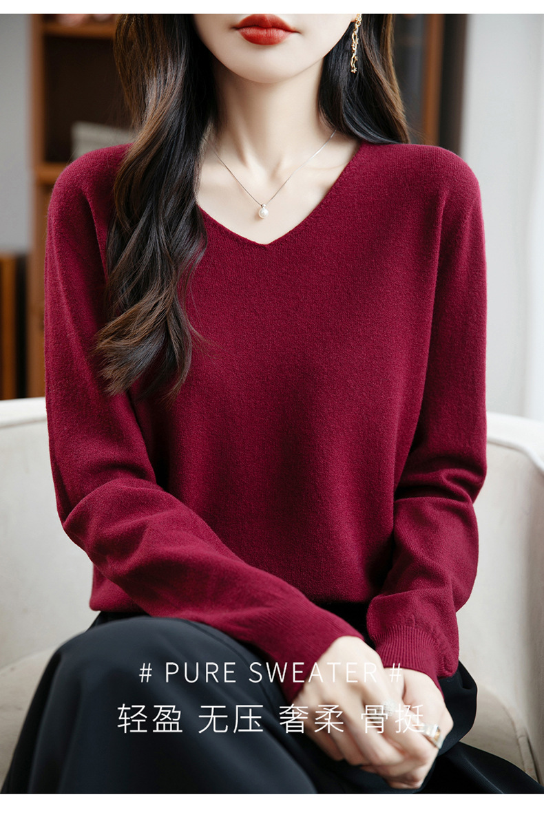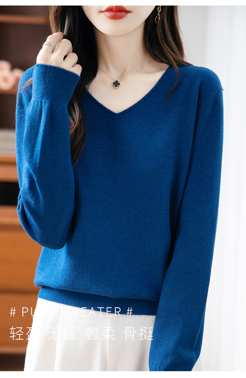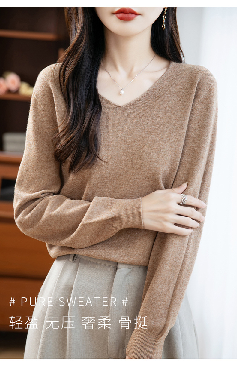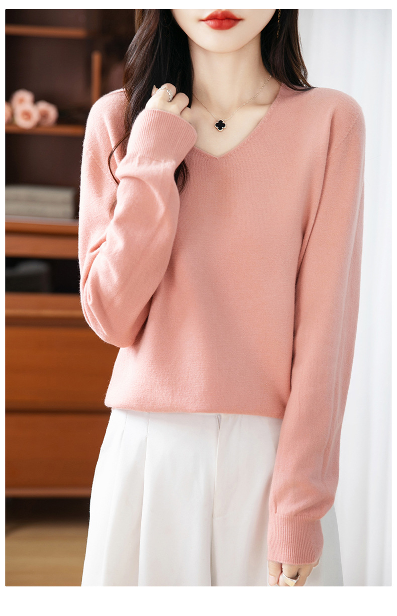 一线成衣V领针织打底衫女宽松气质长袖秋冬新款毛衣内搭女装上衣