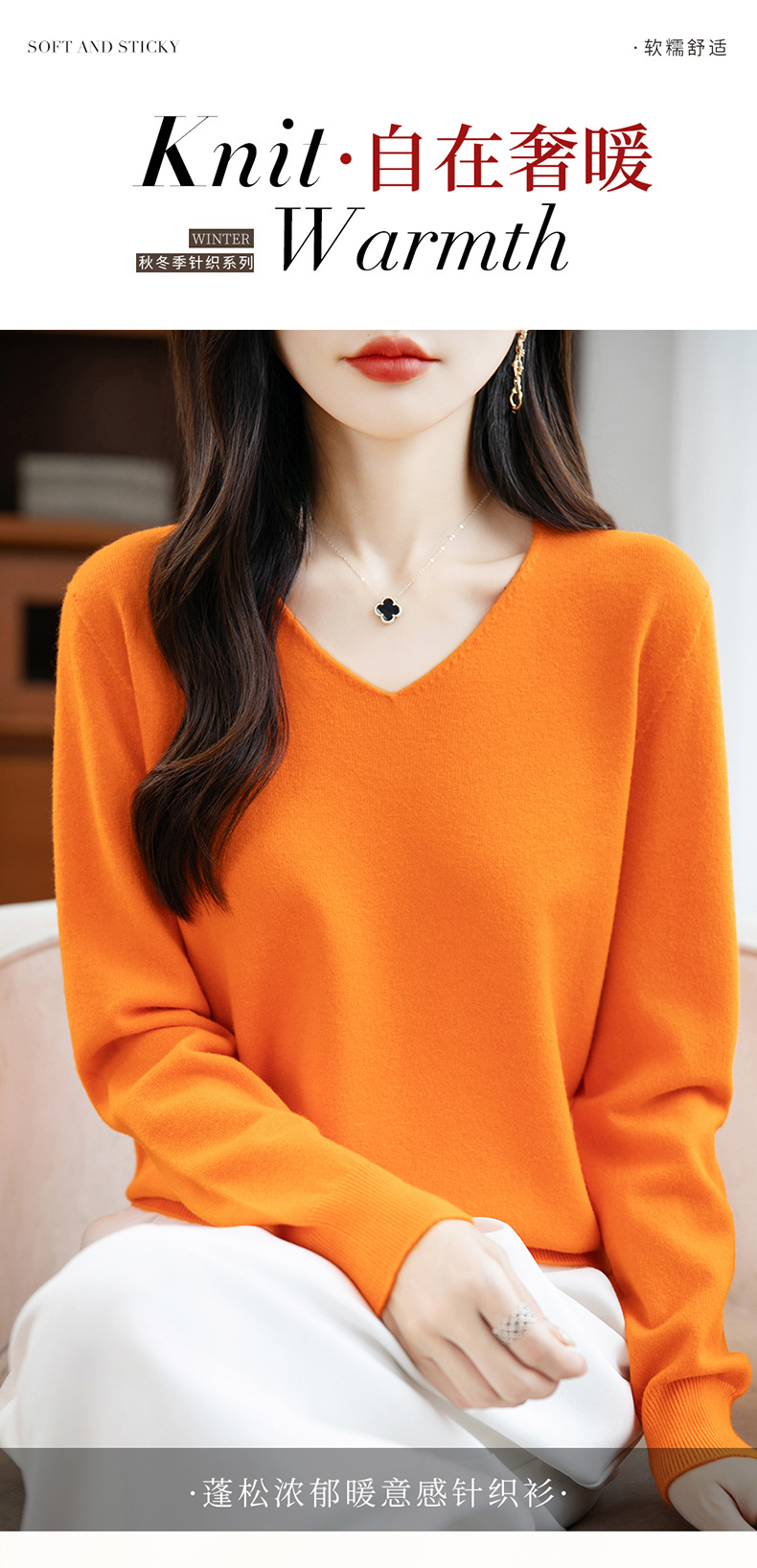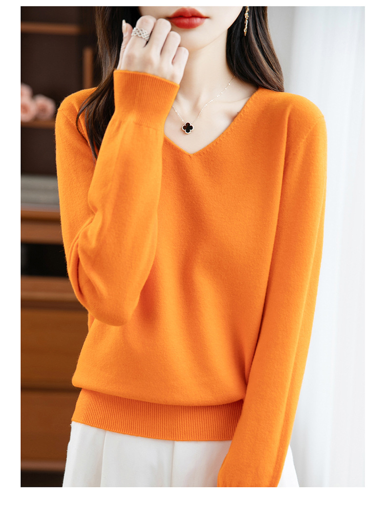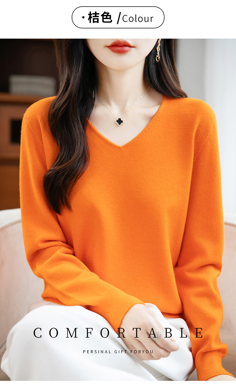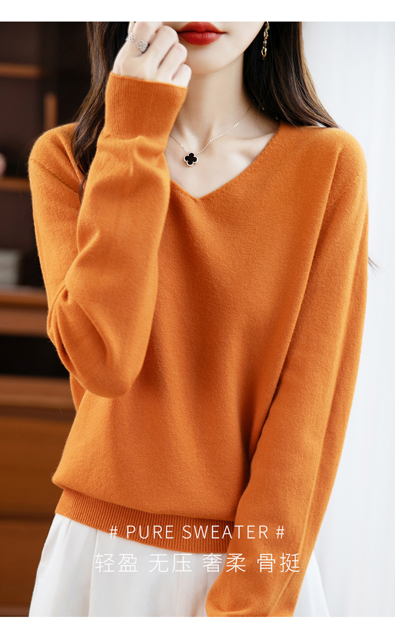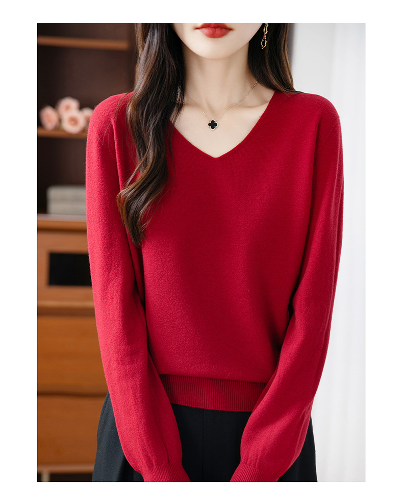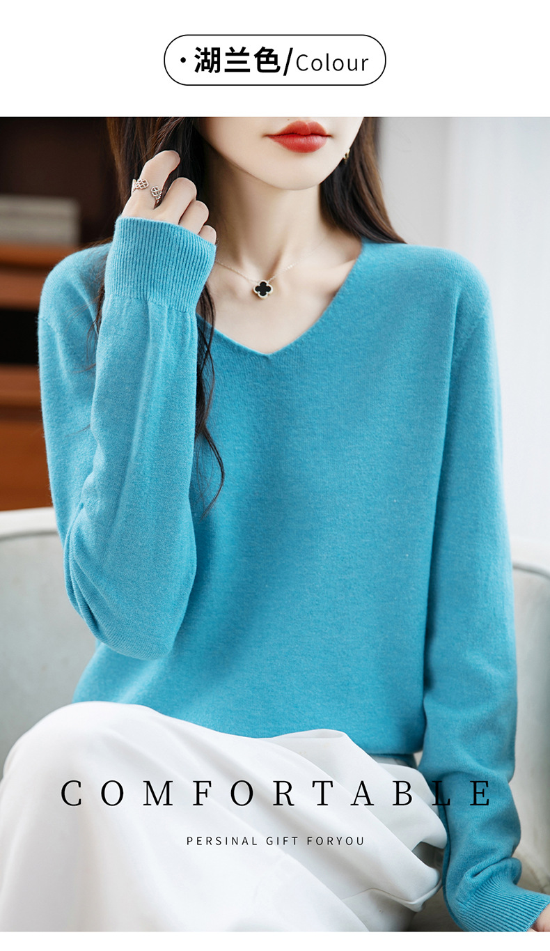 一线成衣V领针织打底衫女宽松气质长袖秋冬新款毛衣内搭女装上衣