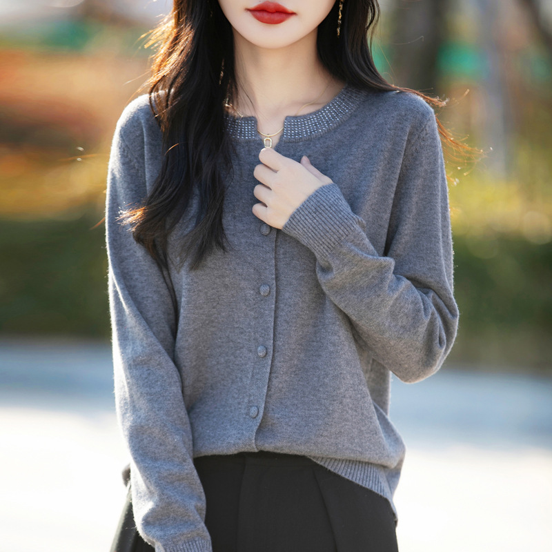一線の成衣のウールのセーターの女性のニットのカーディガンはやせているセーターの上着を見せます。