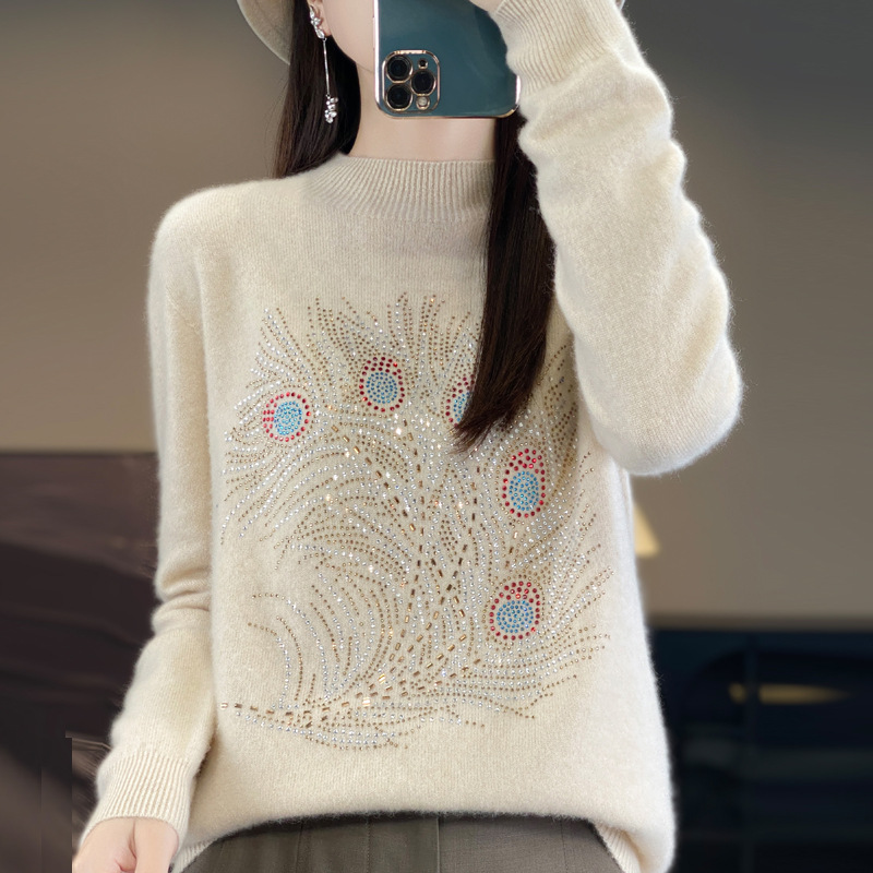 重工のホットドリルの底のシャツの女性の半高襟のセーターの2024新型の柔らかいモチとした高級感のメリヤスの中でセーターの上着を掛けます。