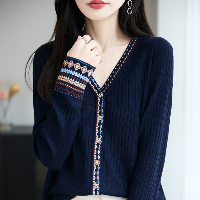复古民族风提花针织开衫女短外套毛衣2025新款外搭女装小衫上衣秋