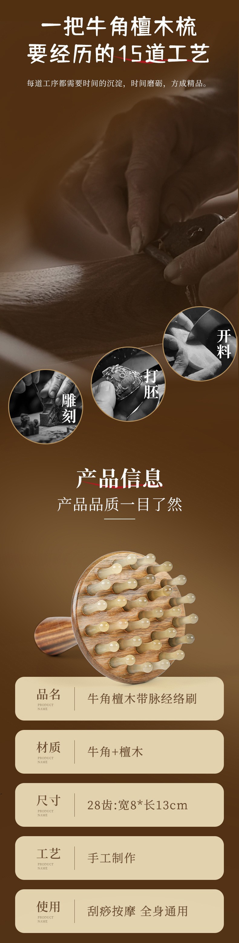 货号 檀木牛角梳水滴