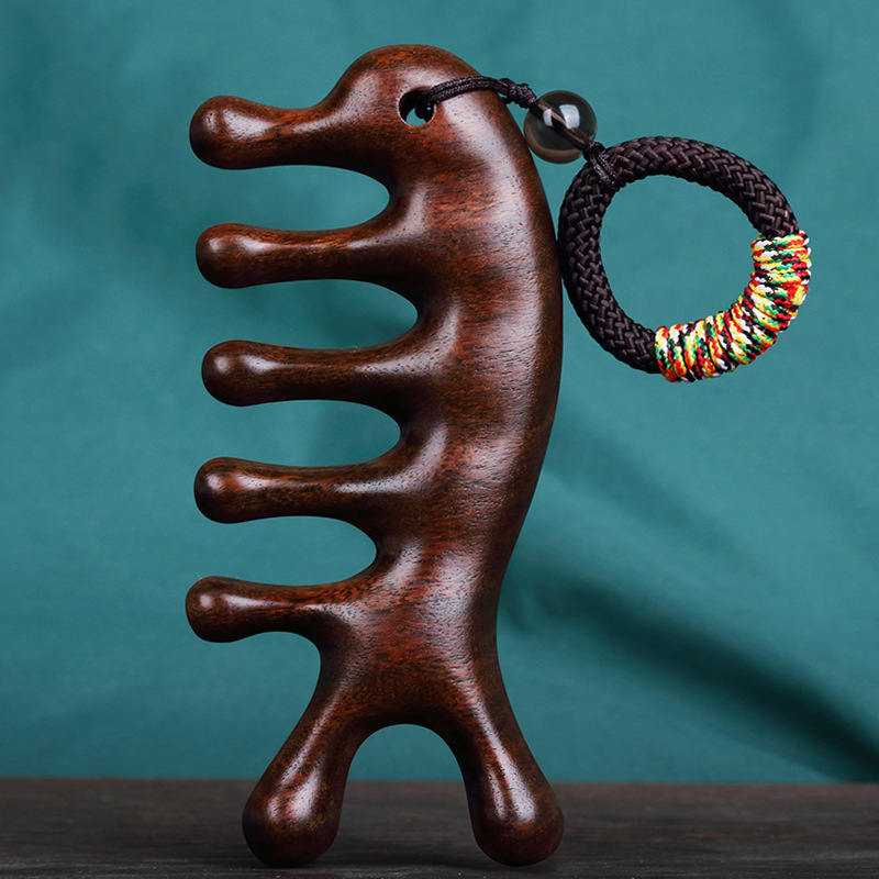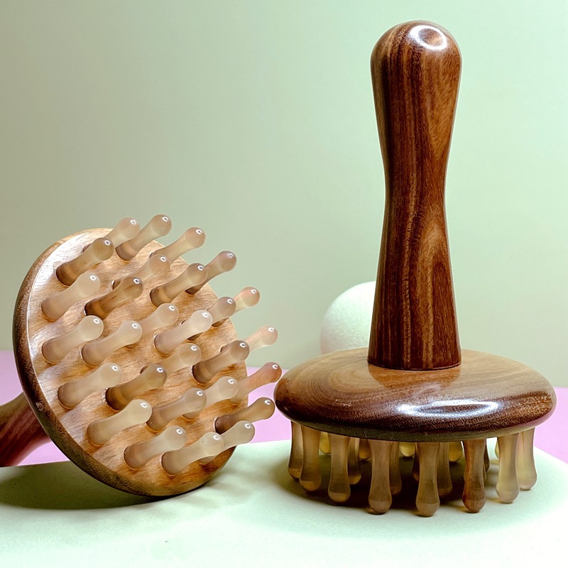 厂家直供檀木牛角按摩梳头部腹部带脉经络按摩刷批发绿檀疏通刮痧