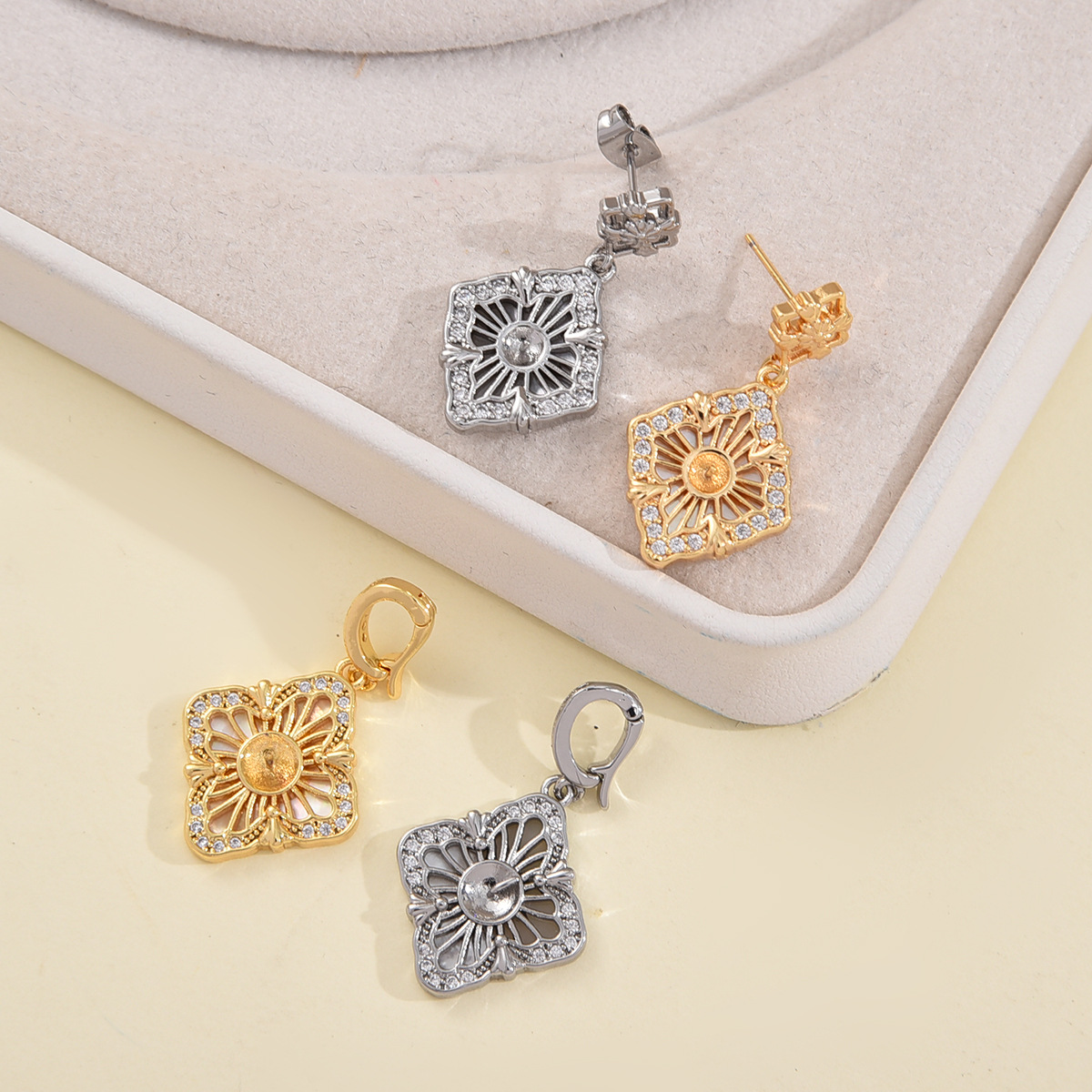 保色メッキ18k真金カラージルコン四葉草ペンダントdiyネックレスイヤリングヘアピン流蘇部品