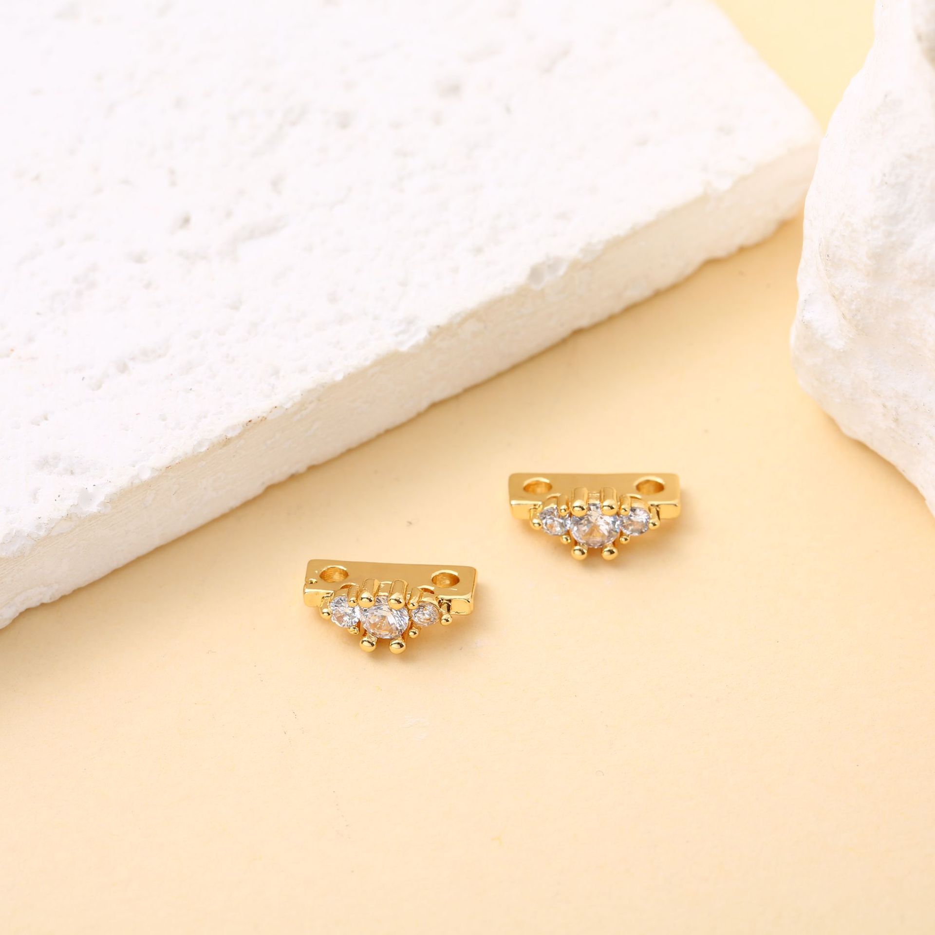 铜镀真金精工镶锆石双排珍珠隔片DIY手工串珠手链项链双孔隔珠配