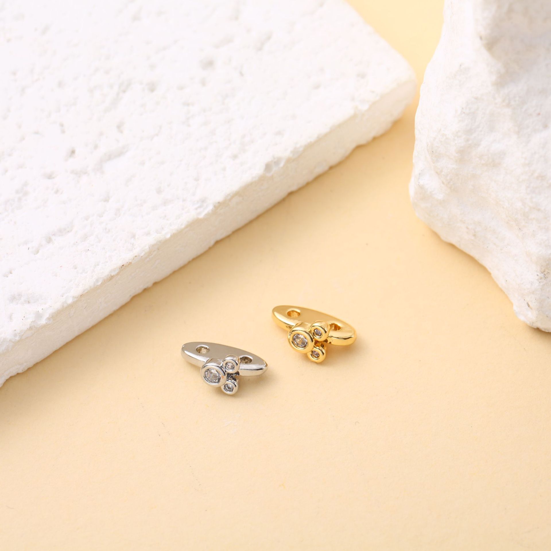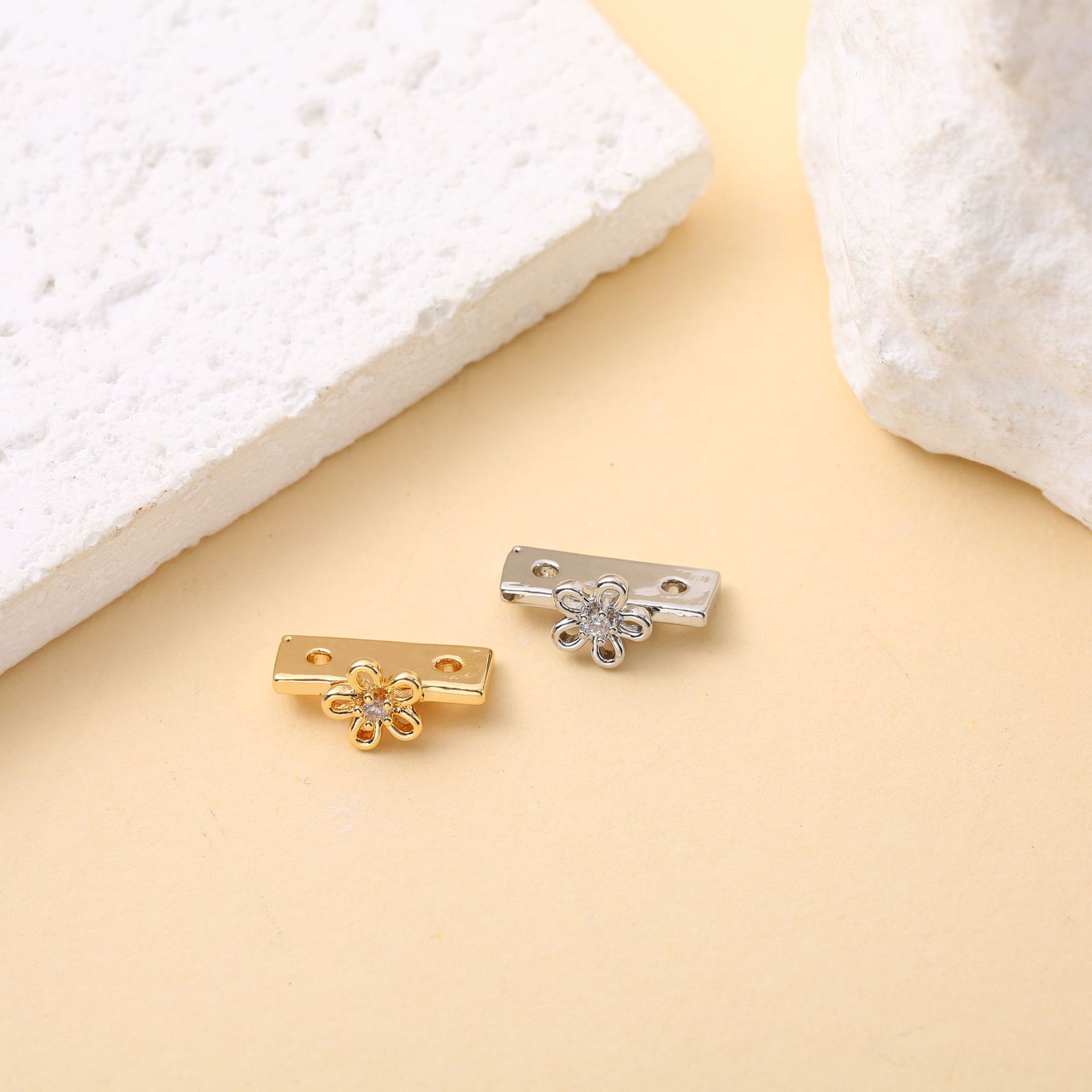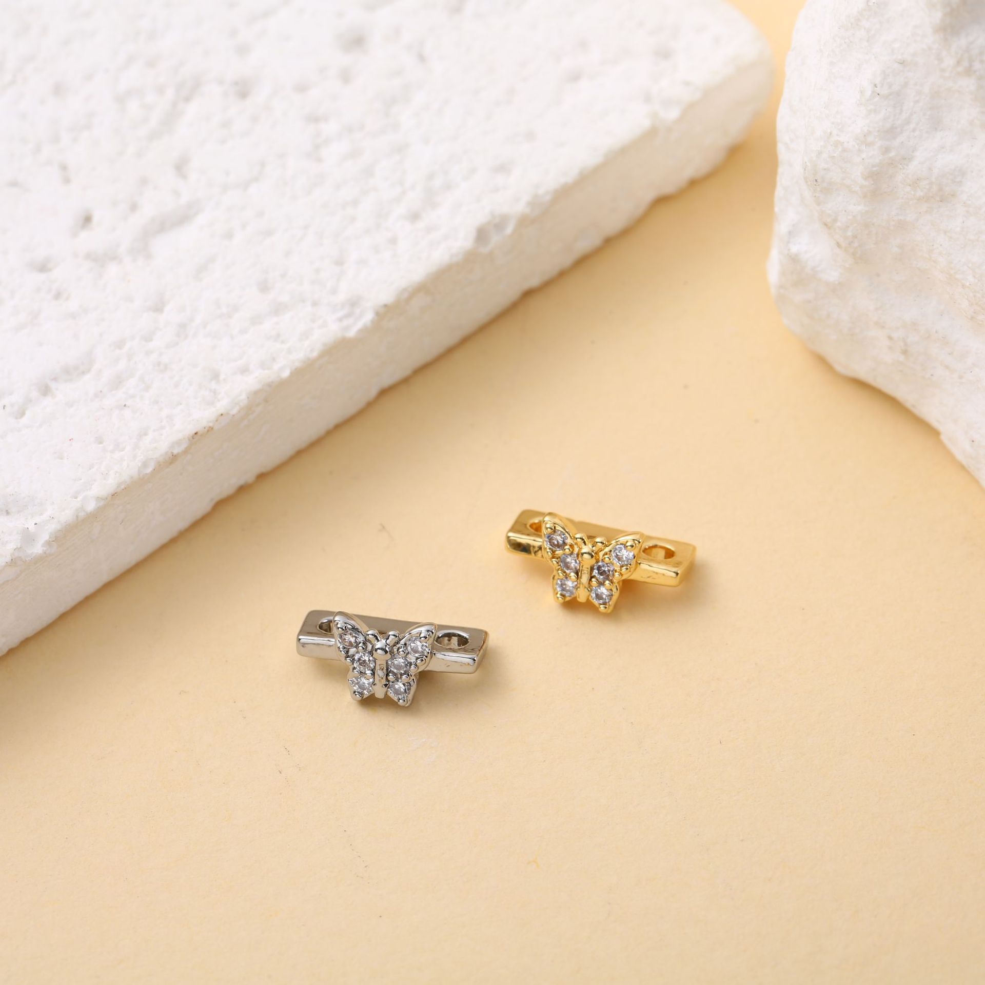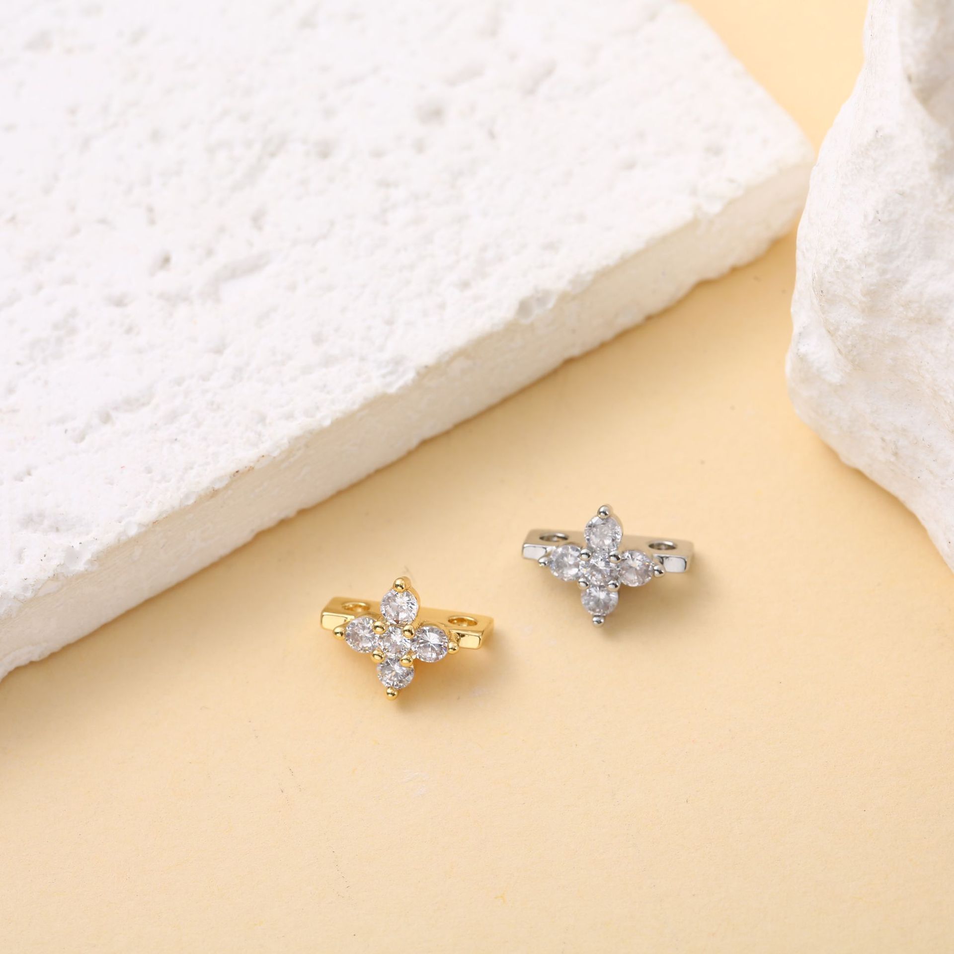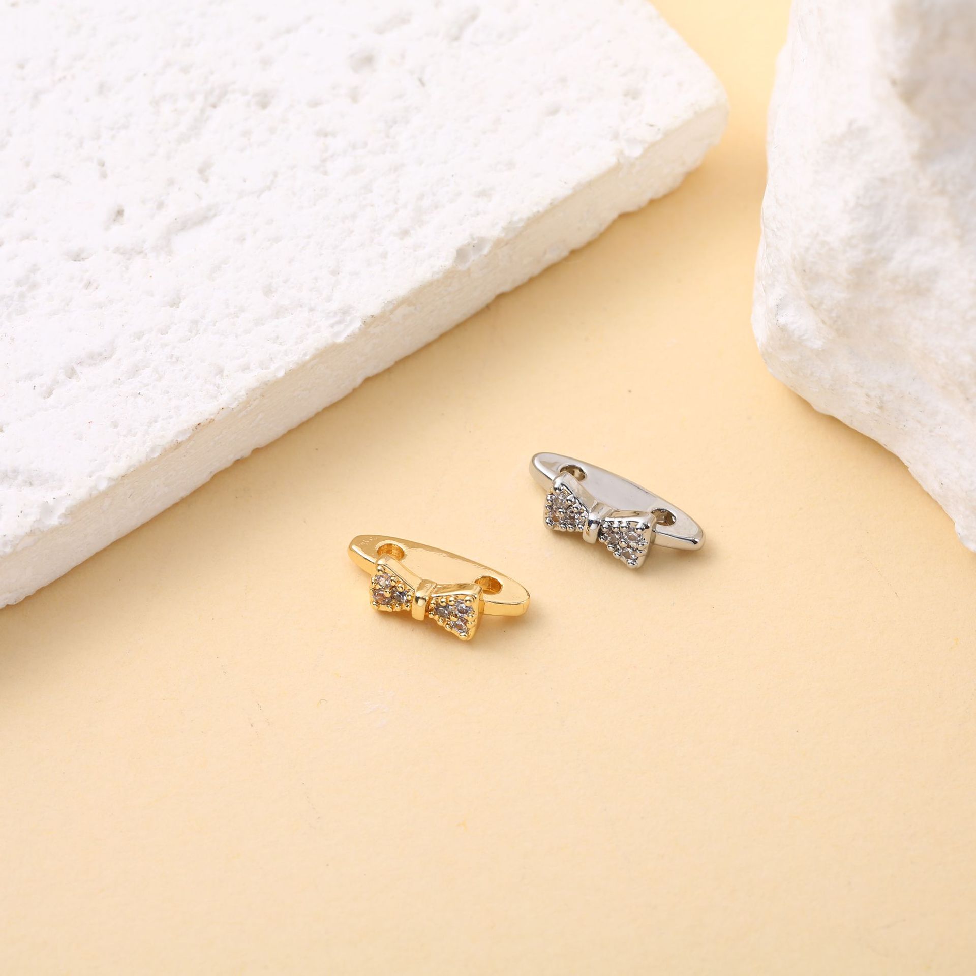 保色18K真金蝴蝶结四叶草双孔排扣双孔隔珠微镶锆石DIY饰品配件