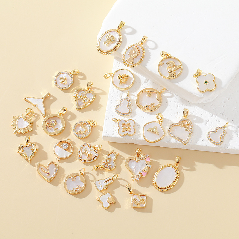 18k包みの金の保色のins貝の母の梅の花の四つ葉のクローバーの幾何学のペンダントdiyのネックレスのブレスレットのペンダントのアクセサリーの部品