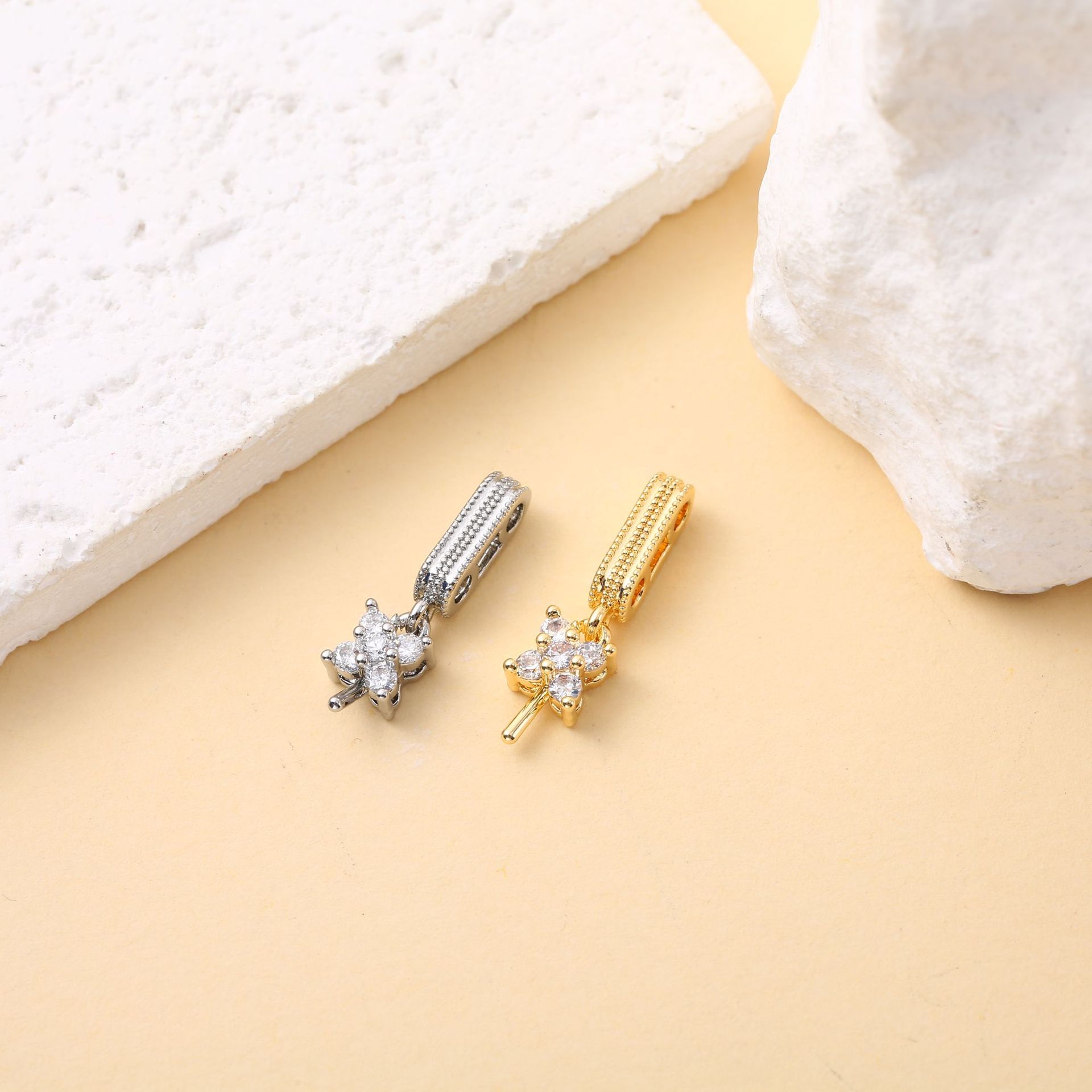 铜镀18K真金微镶钻吊坠珍珠扣 diy保色珍珠吊帽带羊眼针饰品配件