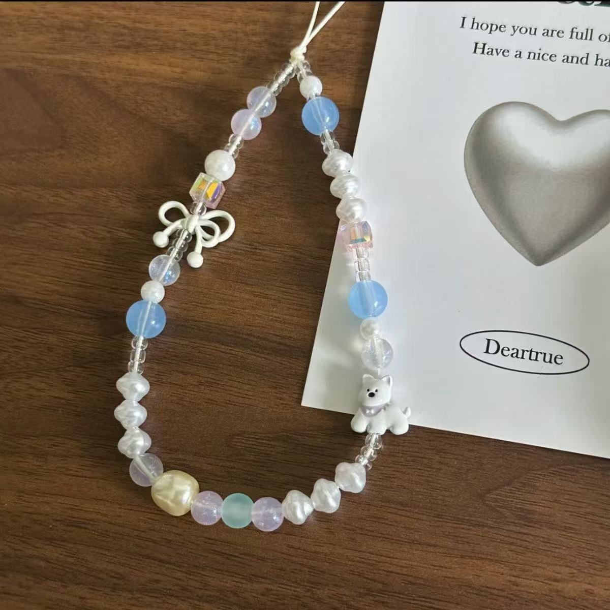 ins串珠夏日蝴蝶结西高地清新手机壳挂链蓝色挂绳ccd相机挂链挂件