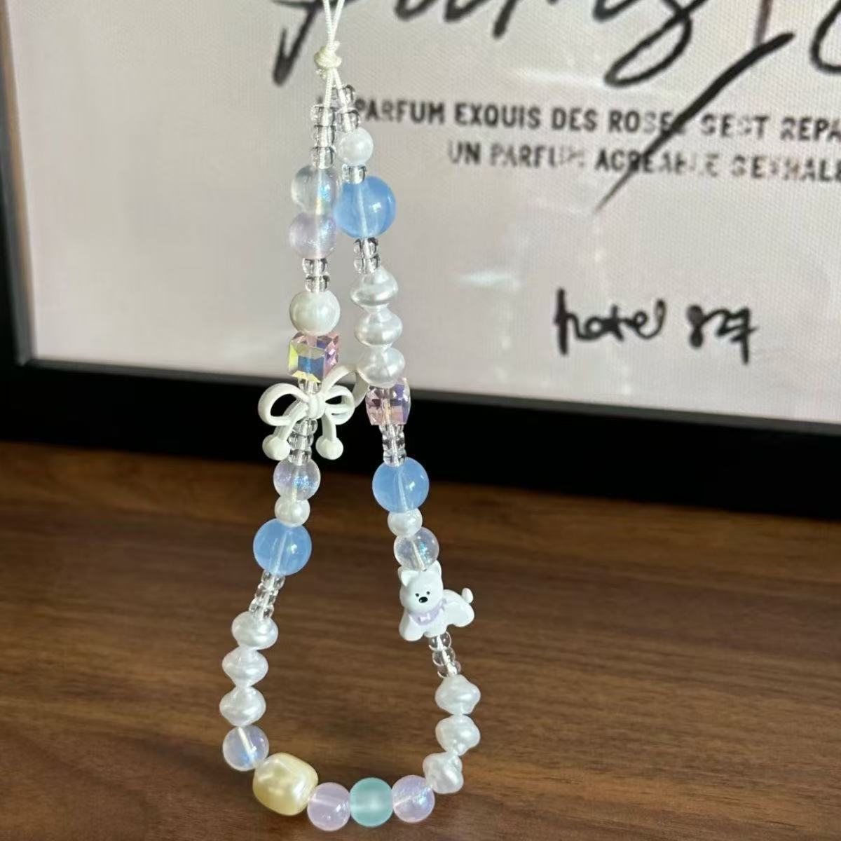 手作りビーズdiy携帯電話のチェーンカラービーズドーパミン熊ccdカメラのチェーンがかわいい犬の飾りが失われないようにする