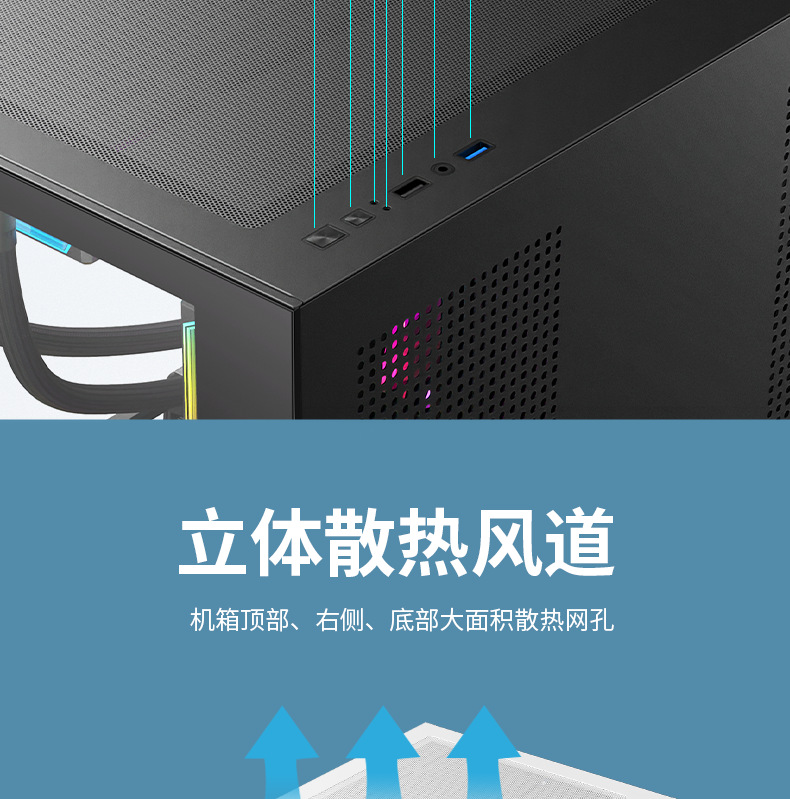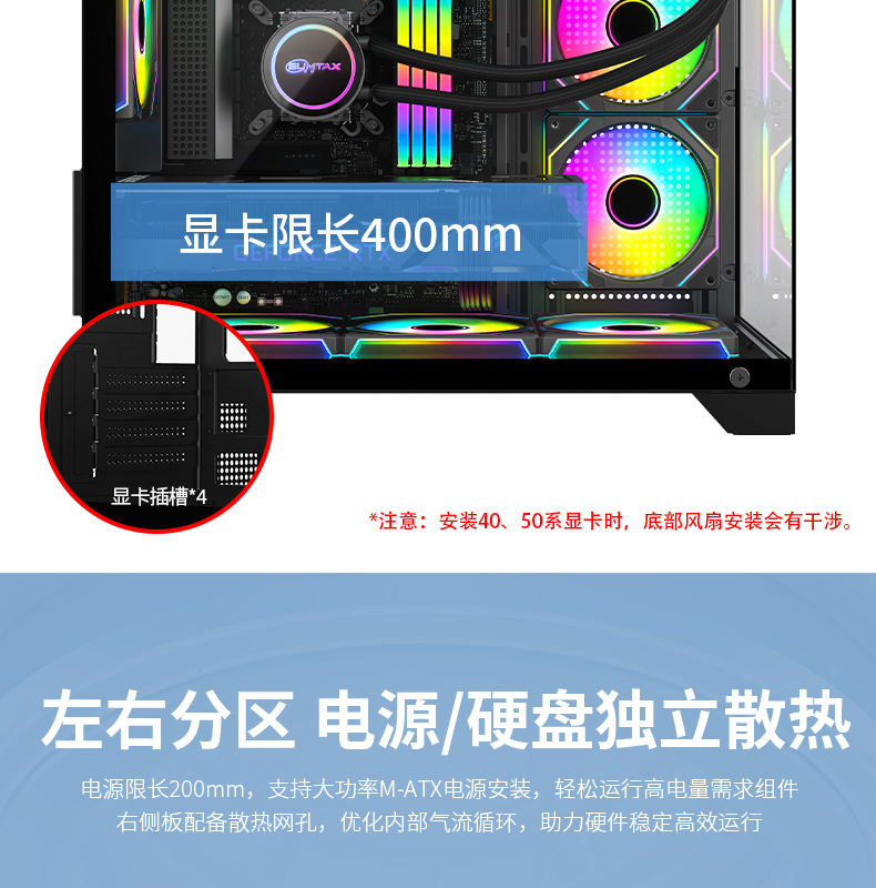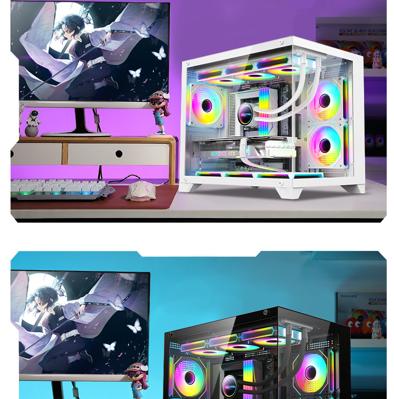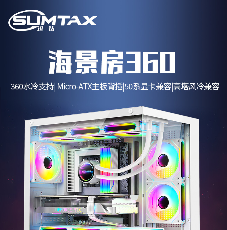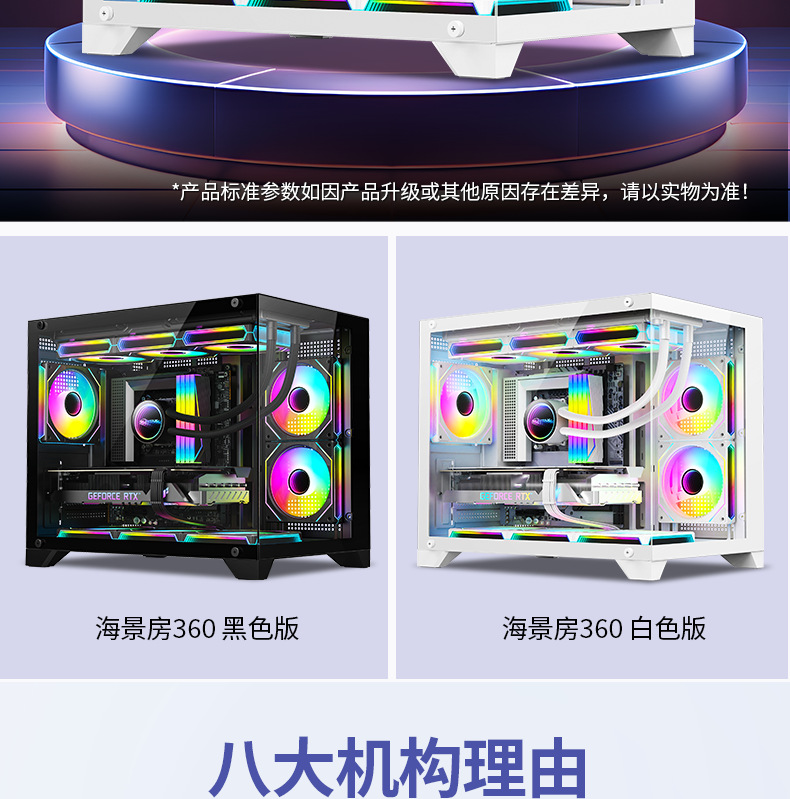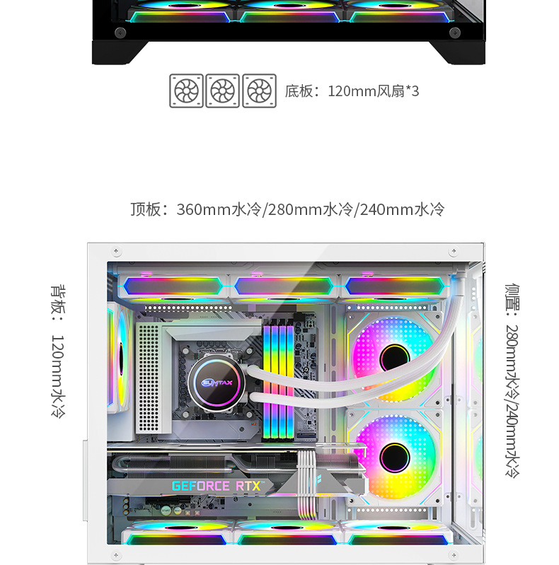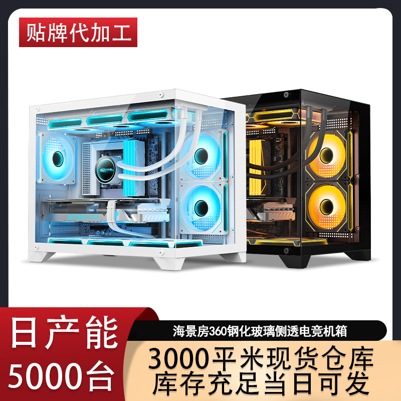 跨境海景房360水冷电脑机箱 台式机全景侧透游戏电竞M-ATX水冷机