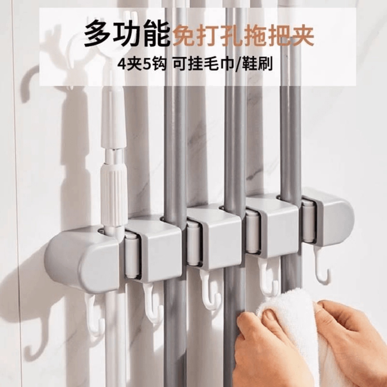 拖把壁挂夹扫把拖布挂钩免打孔拖把夹阳台浴室置物架厨房卡扣神器