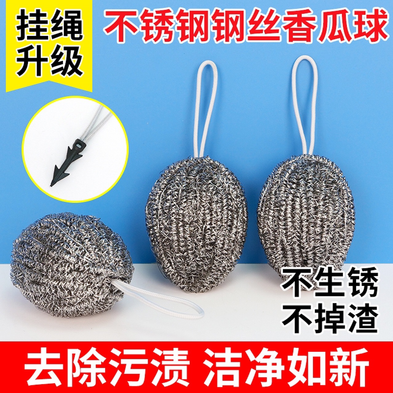 ストラップ付きワイヤーボール、ステンレス製クリーニングボール、キッチンポット、食器洗い用品、ワイヤーボール、家庭用錆びない