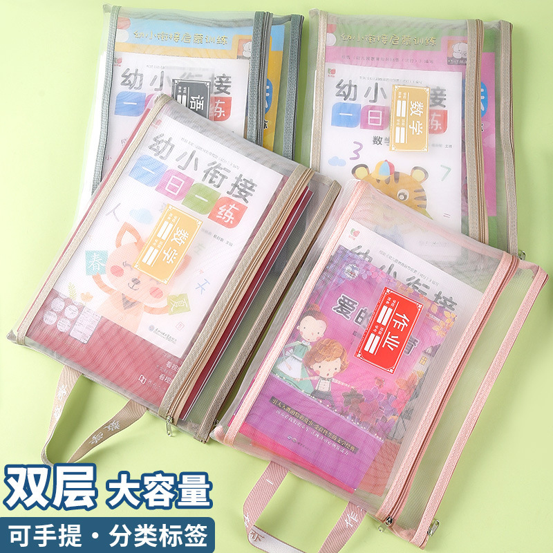 新学期必須学生用科目ファイルバッグ大容量収納分類二層バッグ厚手中学生向け
