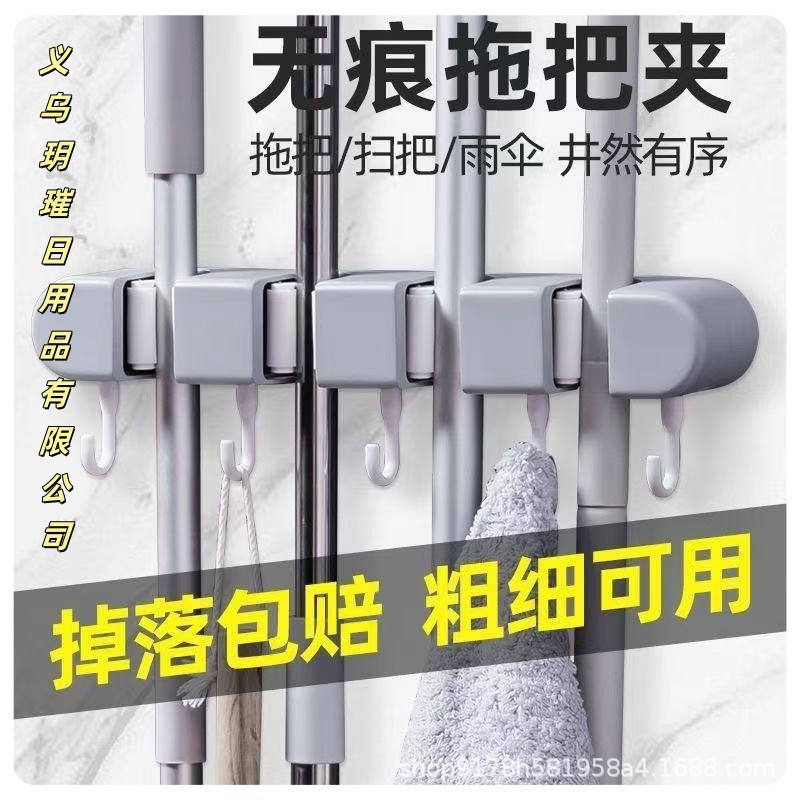 モップクリップ壁掛け穴なしほうきモップフック固定棚トイレ浴室扉後物棚神器