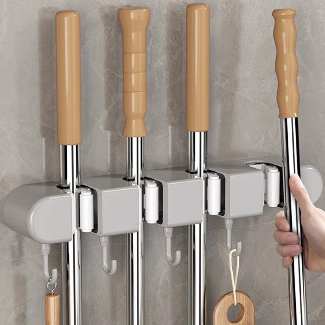 壁掛けモップホルダー穴なしフックバルコニー浴室トイレバックル固定ほうき置物収納ハンガー