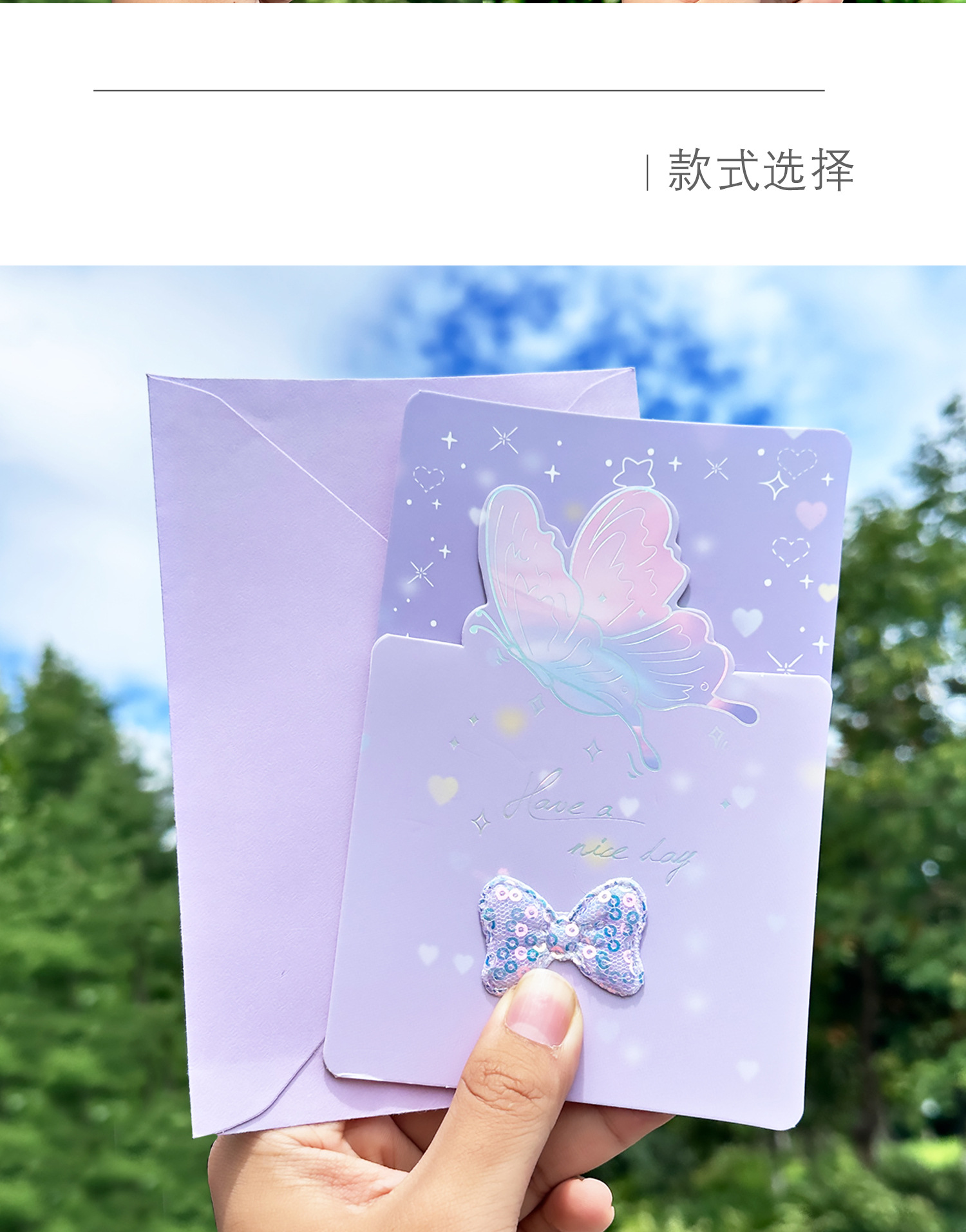 蝴蝶造型贺卡翩然入梦精致留言卡信封明信片小清新蝴蝶结三折贺卡