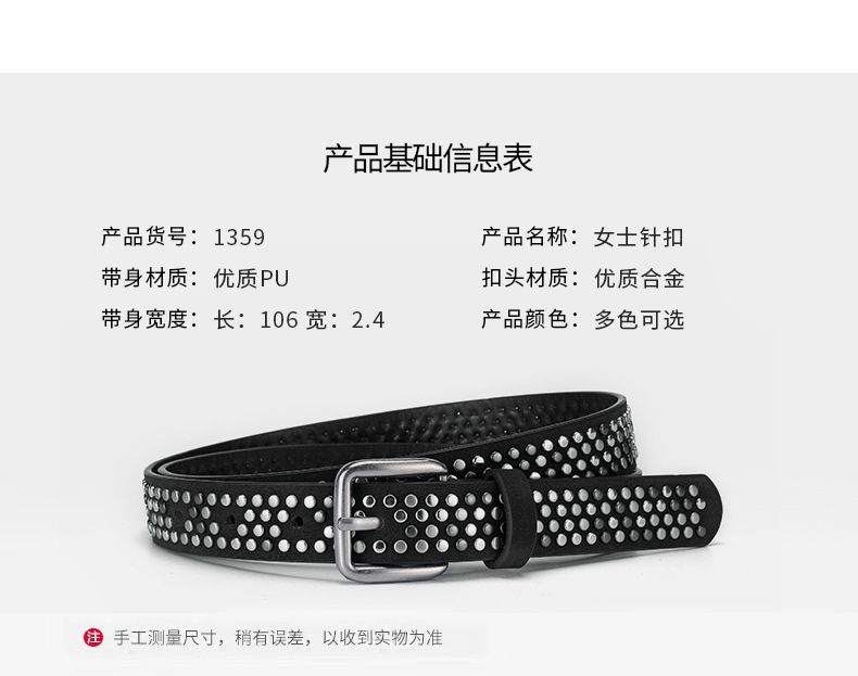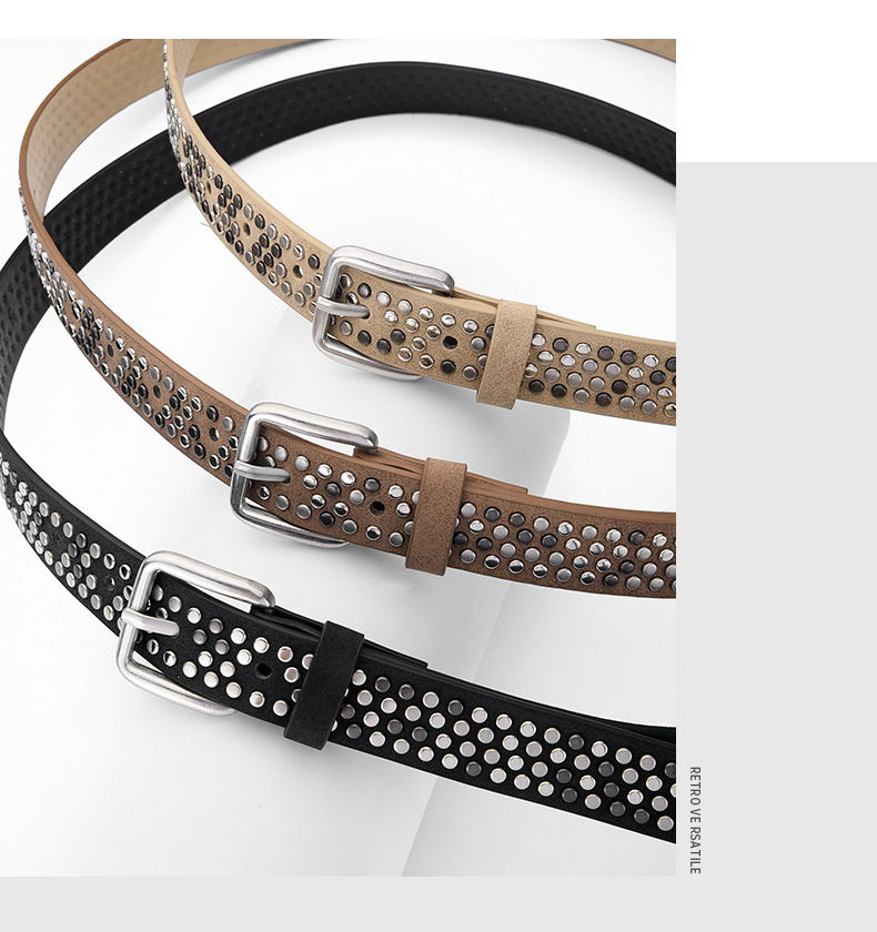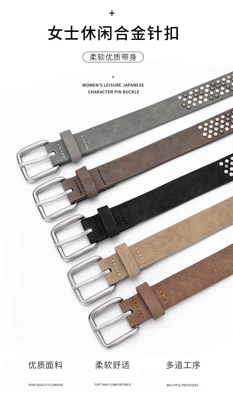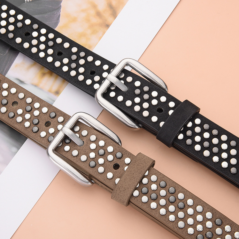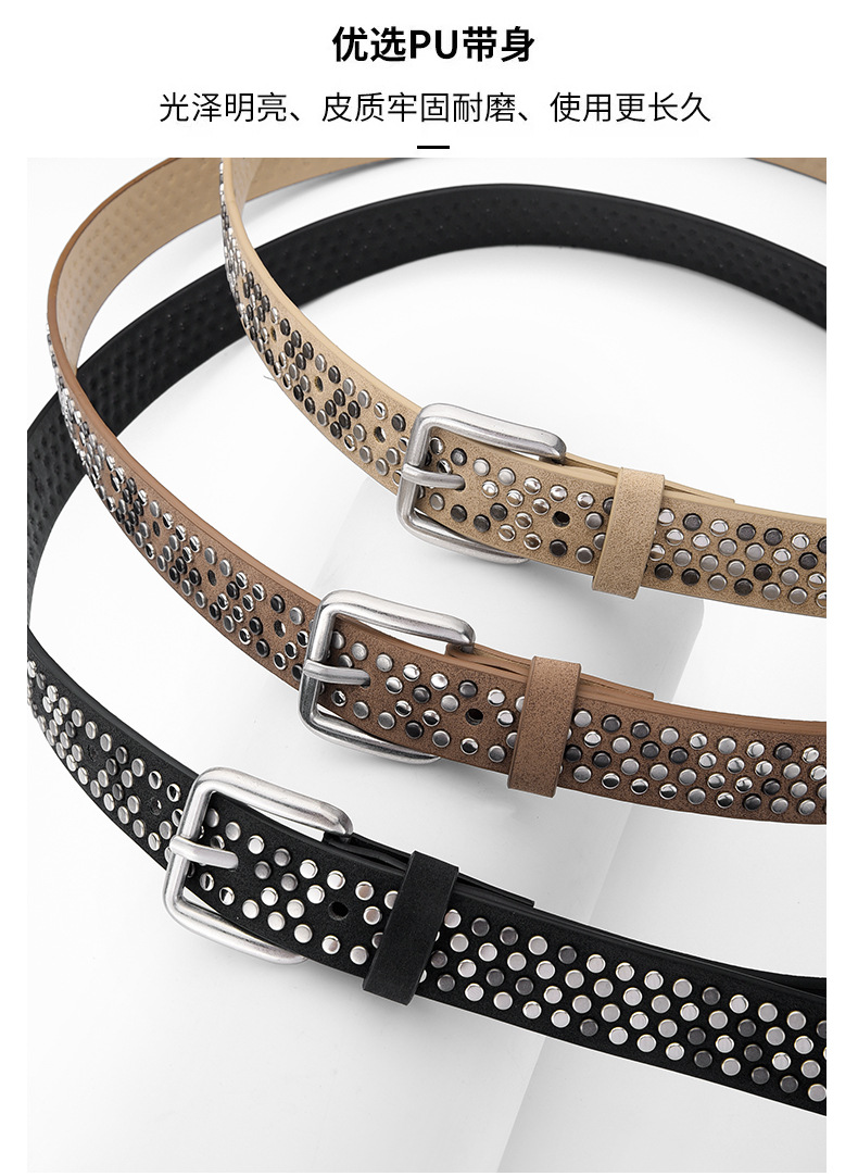 新款现货女士铆钉皮带针扣腰带朋克休闲潮流腰带百搭个性腰带