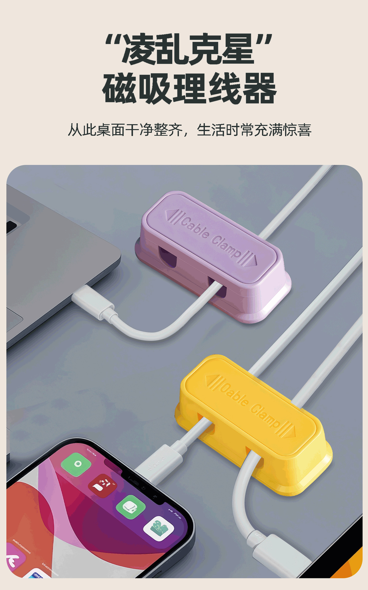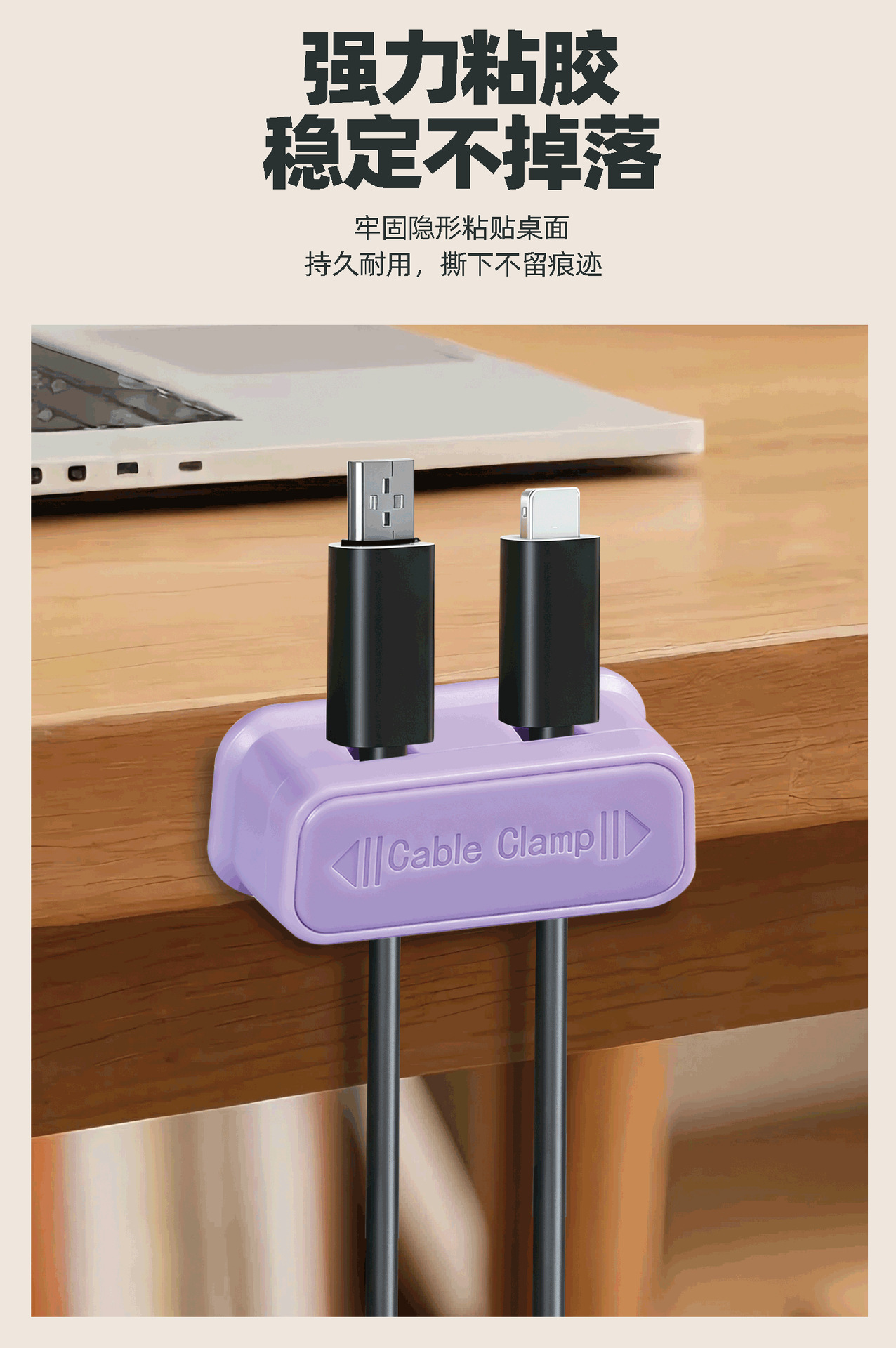 双孔磁吸理线器家用办公桌面充电数据线固定器壁挂式插排绕线卡扣