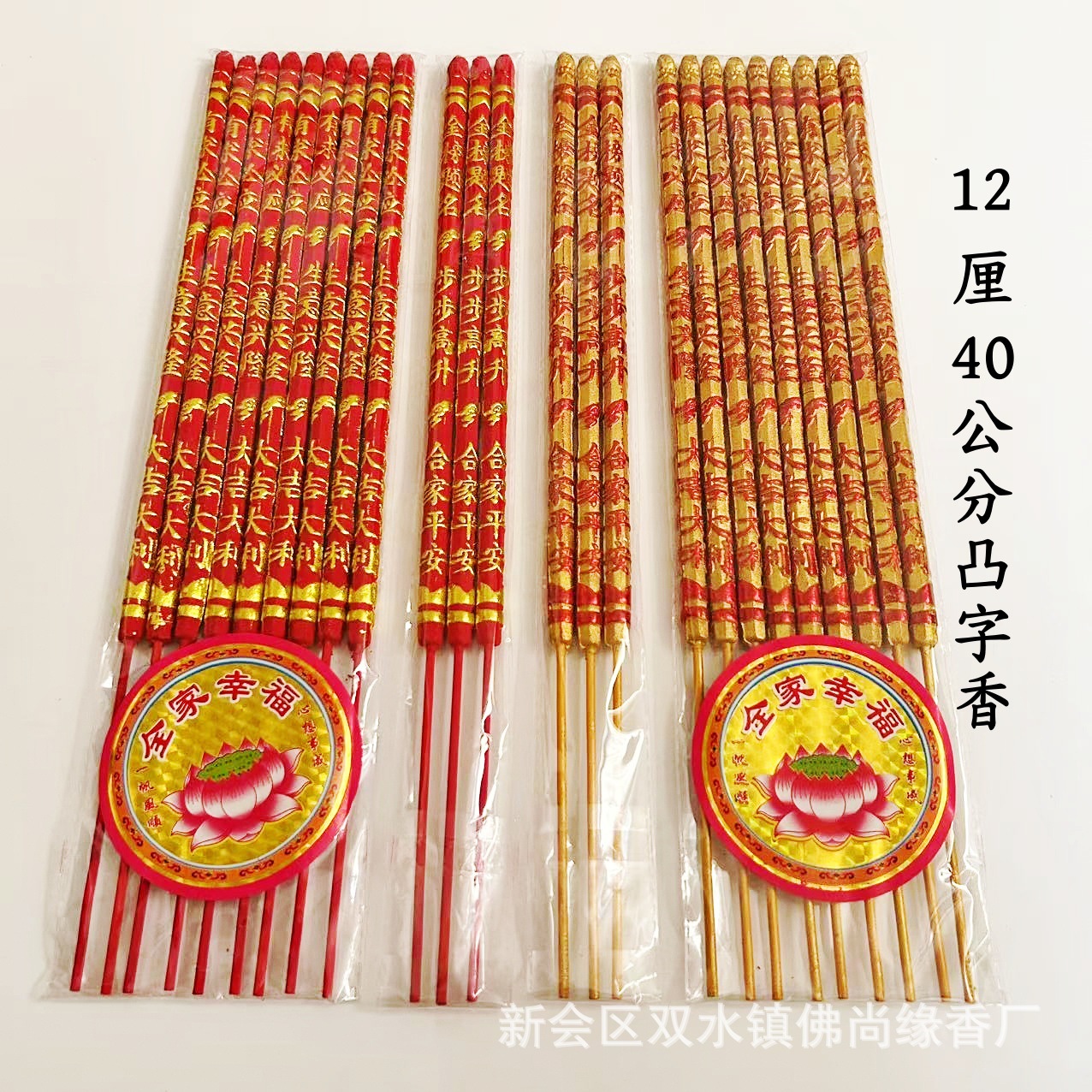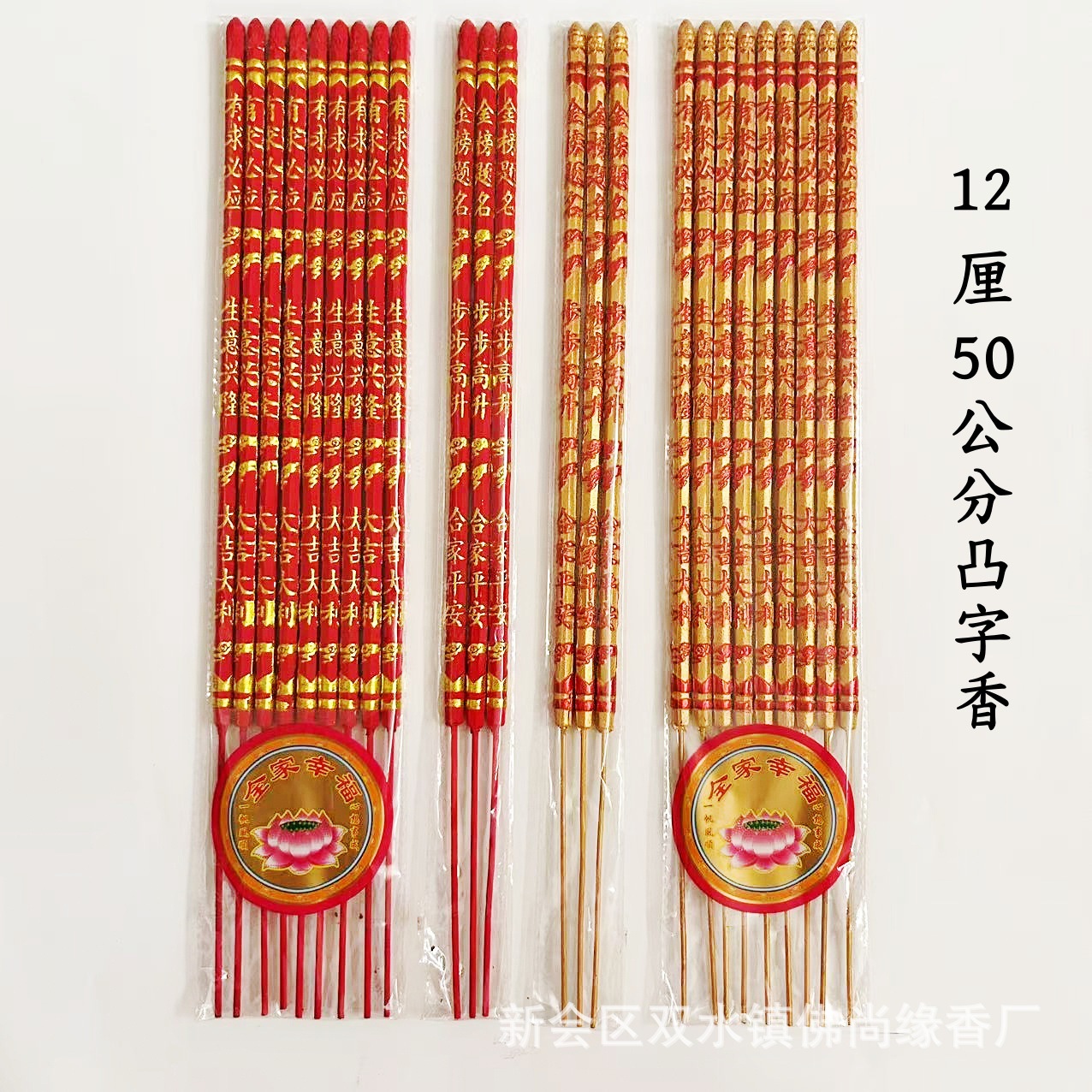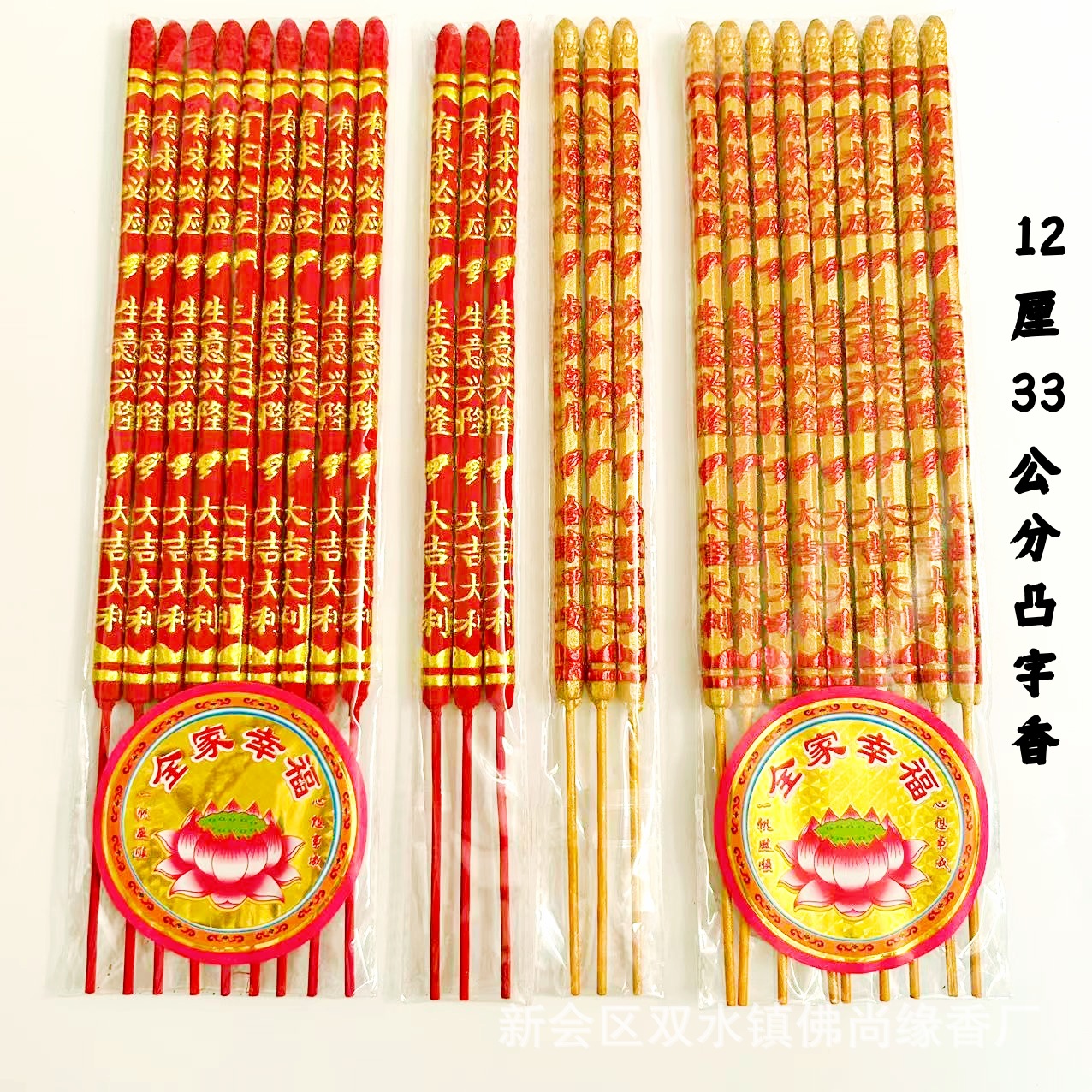12厘凸龙凸字香9根5060公分中国红佛香批发厂家直销竹签香