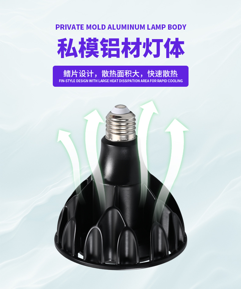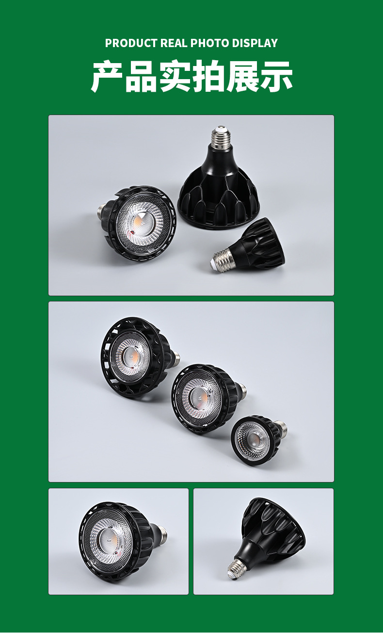 PAR38,尺寸:Φ120 x 130mm,功率:30W,重量0.53kg;