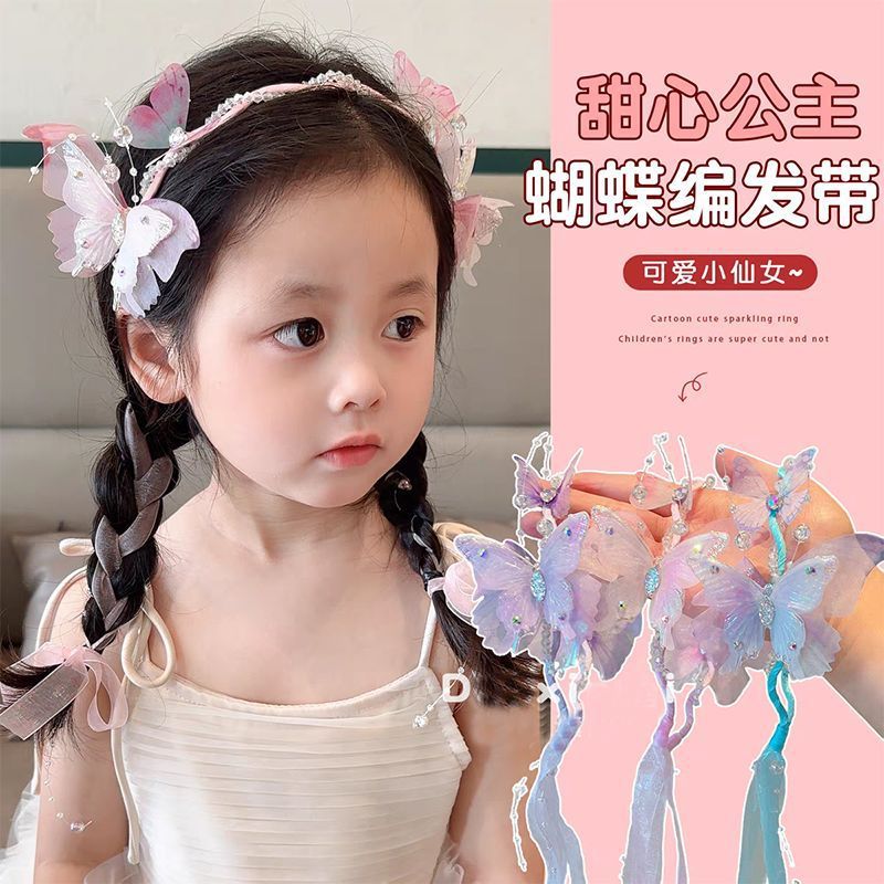 女の子の甘いクールで洗練された蝶の髪のボタンは、汚れたお下げを再利用してジャズダンスの気質のヘアピンを編むことができる