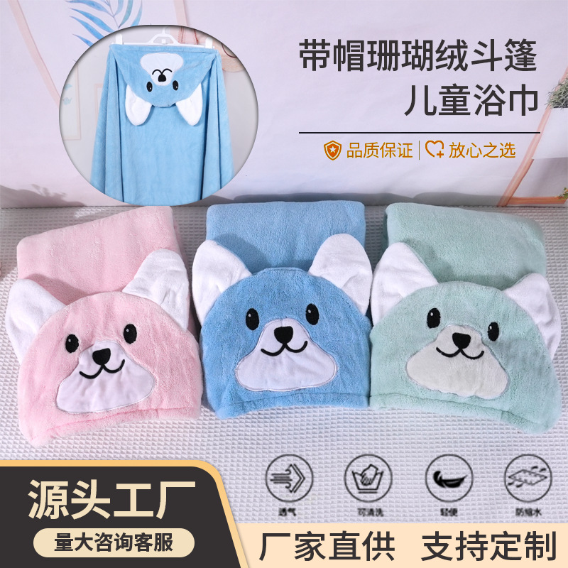 子供用バスタオルは男女の帽子付きマントを着ることができます。